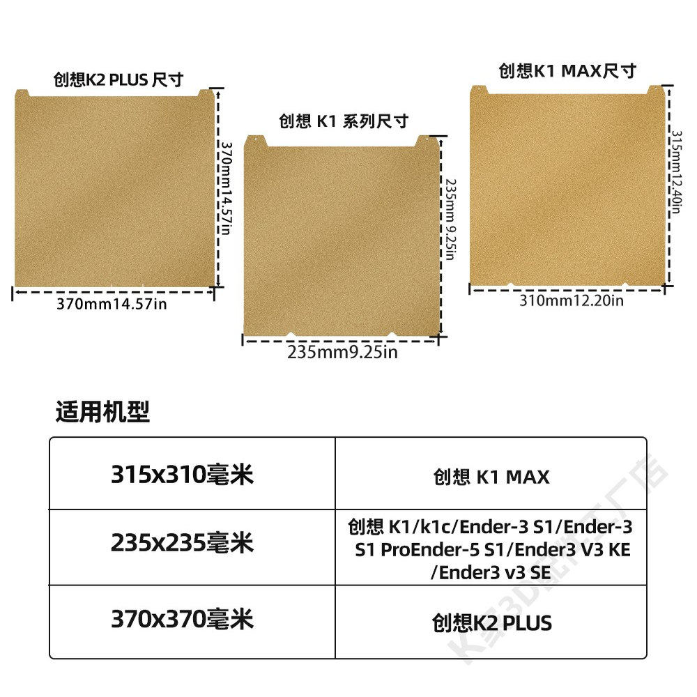 📚 创想K2PLUS/Pro/K1C/MAX/Ender3V3/S1/Hi热床PEI喷涂钢板打印平台