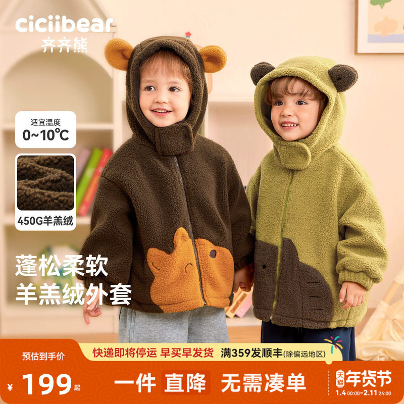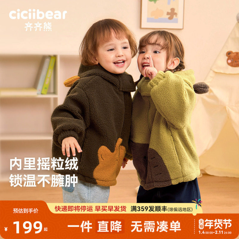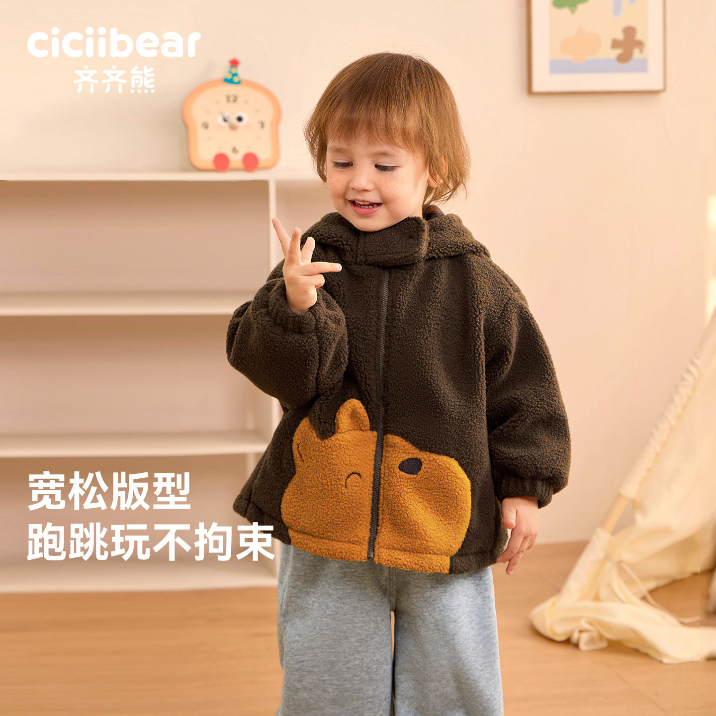 📚 [450g羊羔绒]齐齐熊宝宝夹棉外套男童秋冬款儿童加绒加厚保暖上衣