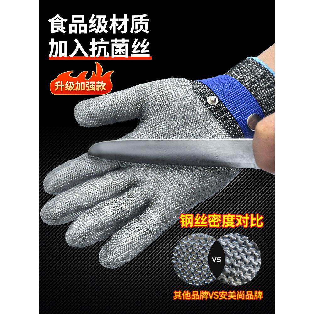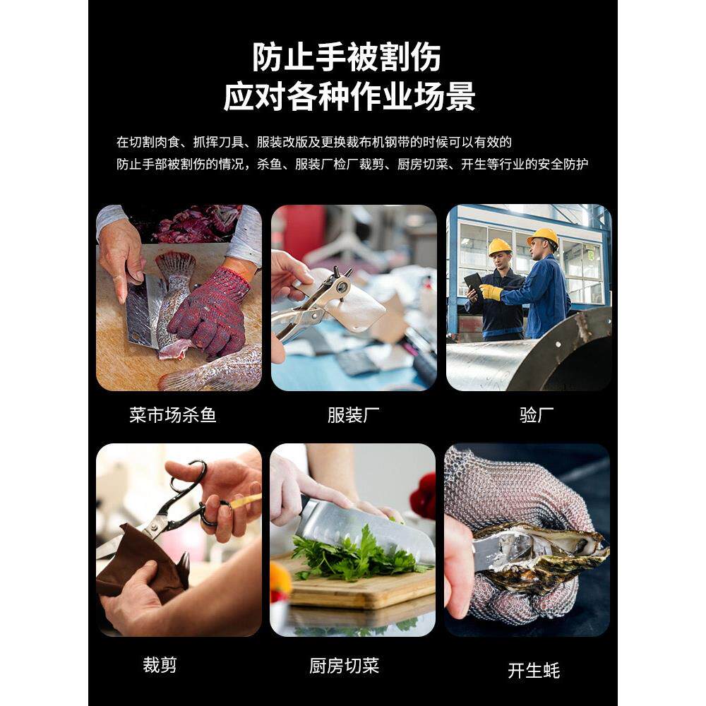 📚 防割耐磨手套钢丝加厚防切割专业级软丝工作杀鱼切菜切肉菠萝刀割
