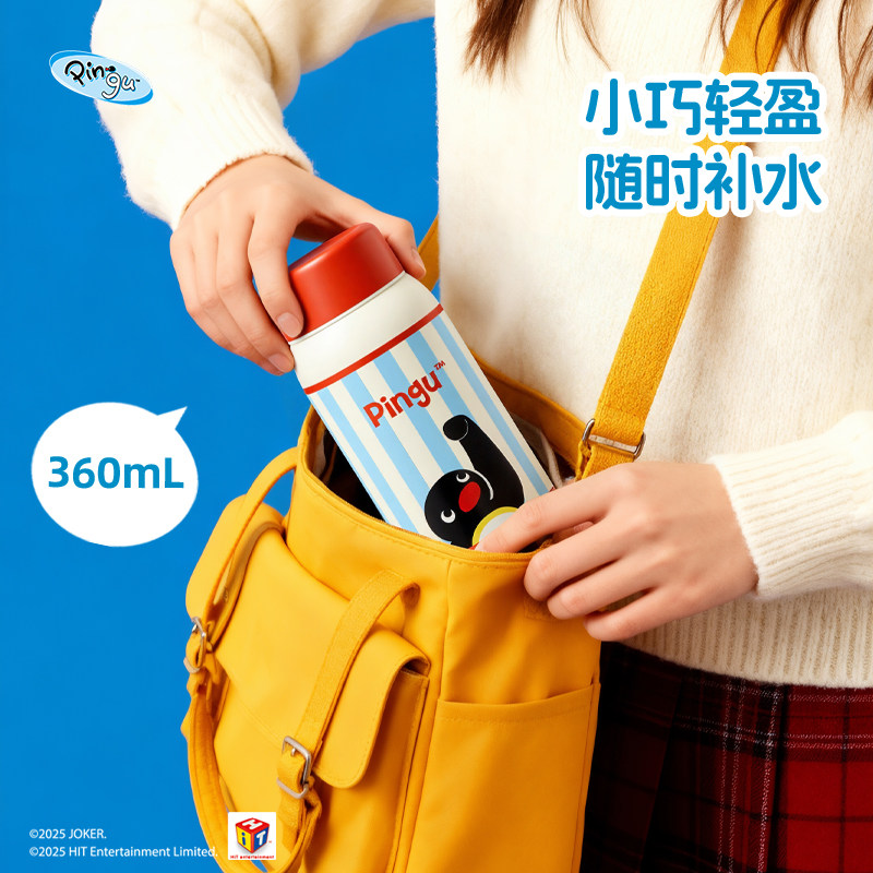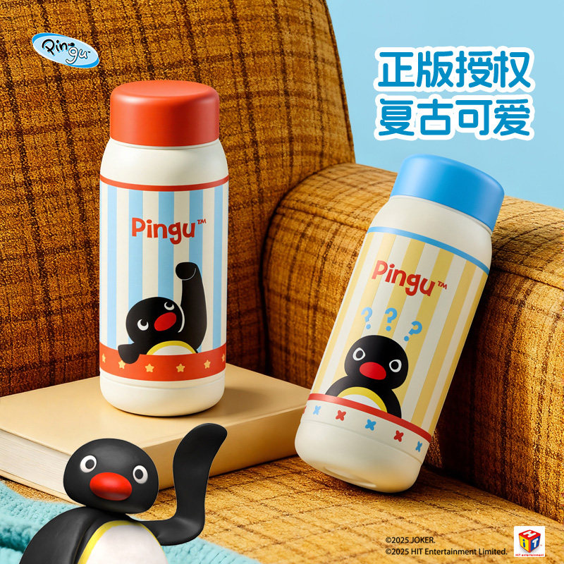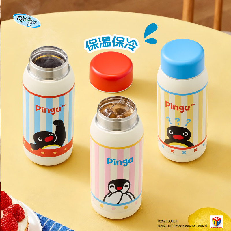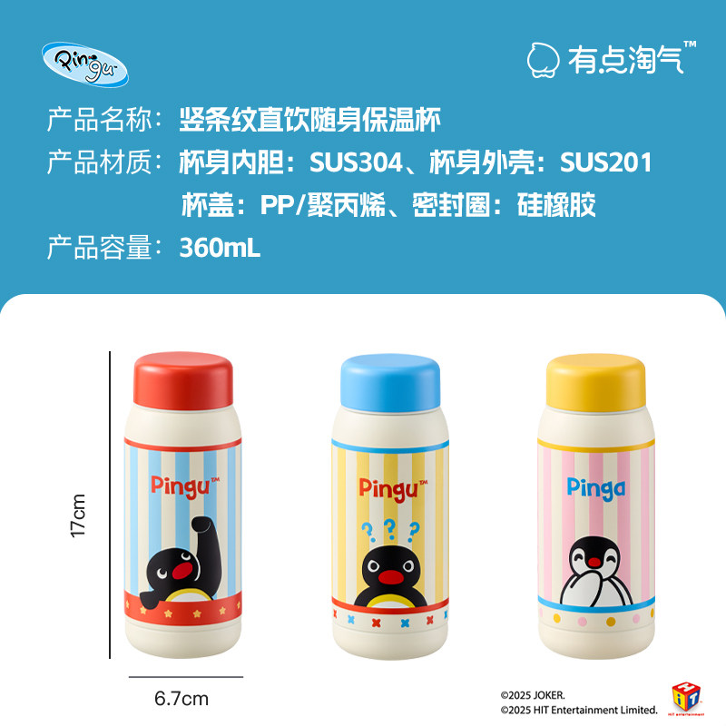 📚 会员精选 有点淘气 x Pingu正版IP授权竖条纹直饮随身保温杯
