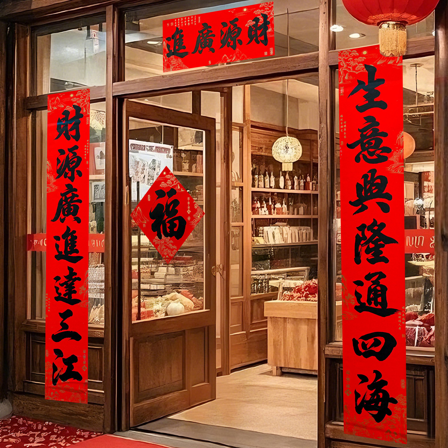 📚 生意兴隆对联春联2026年马年新款公司大门店铺门市自带全背胶高端