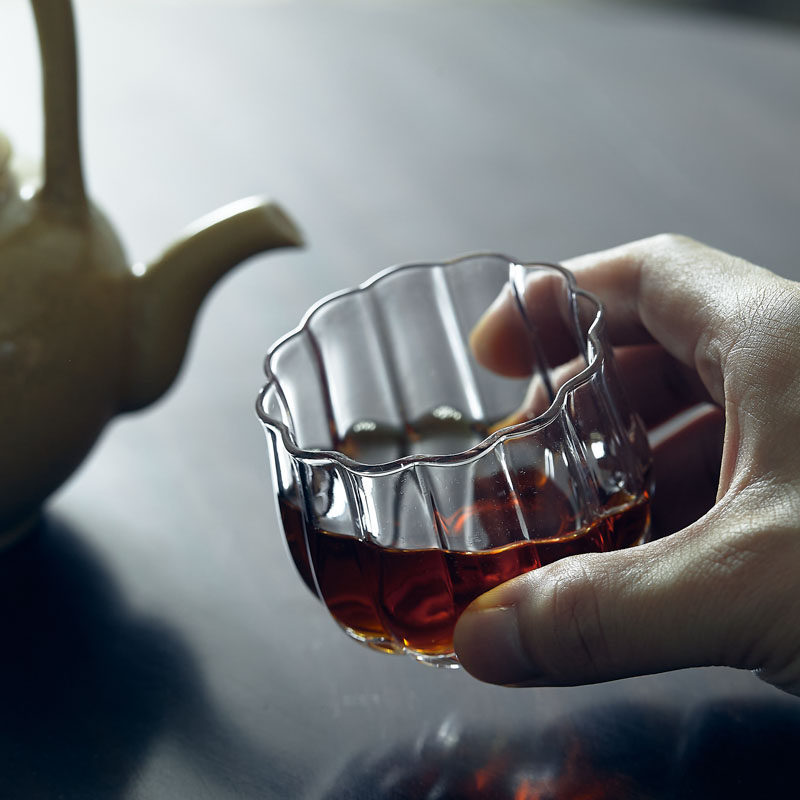 📚 玩物志水晶玻璃茶杯单个120ML主人杯花口清酒果酒烈酒小杯子 闻香