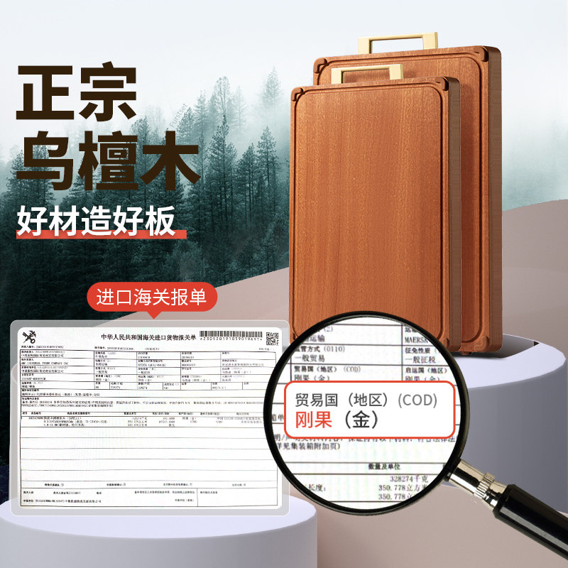 📚 双枪菜板乌檀木整木砧板防滑防霉实木切菜板家用面板双面粘板刀板