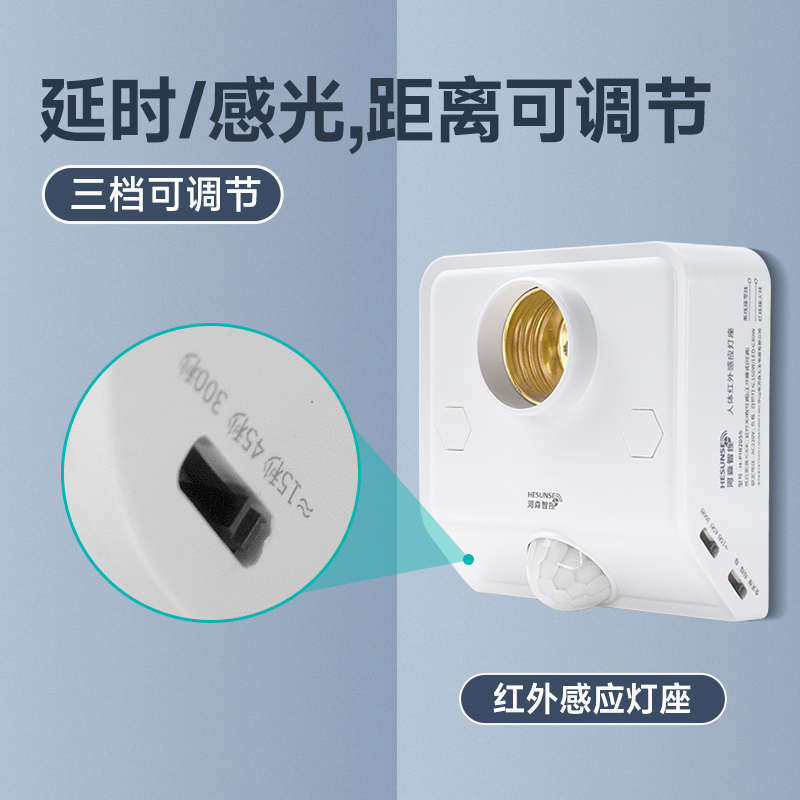 📚 河森86型人体感应开关灯座楼道延时220v红外线智能自动带光控家用