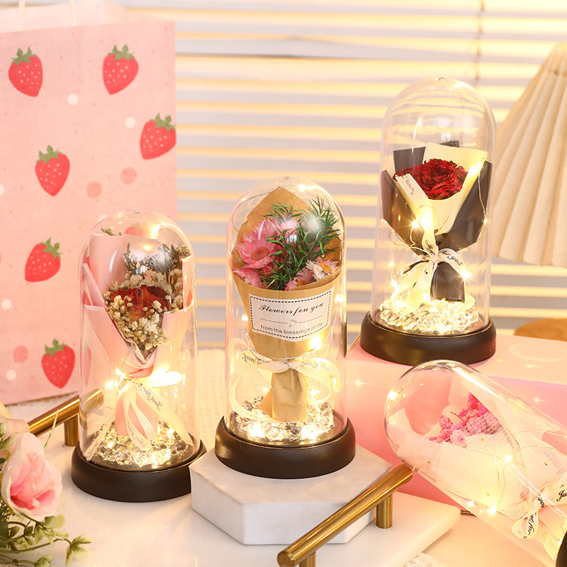 📚 迷你小花束黄玫瑰花满天星永生干花mini生日礼物送女生女朋友小众