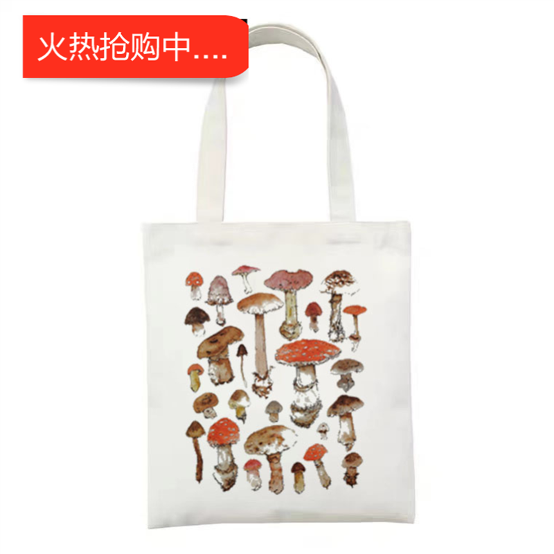 📚 犇Frog Mushroom Canvas Bag 个性欧美INS风青蛙蘑菇印花环保帆布