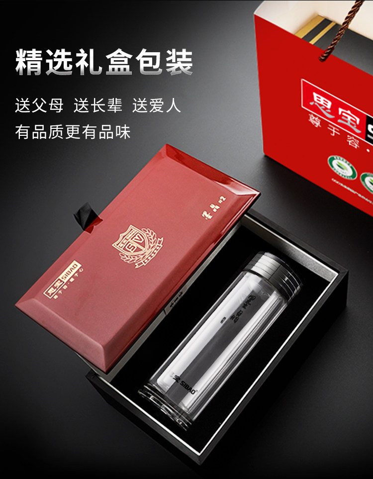 📚 专柜正品思宝墨晶360毫升双层水晶玻璃杯礼品杯泡茶杯生日礼物