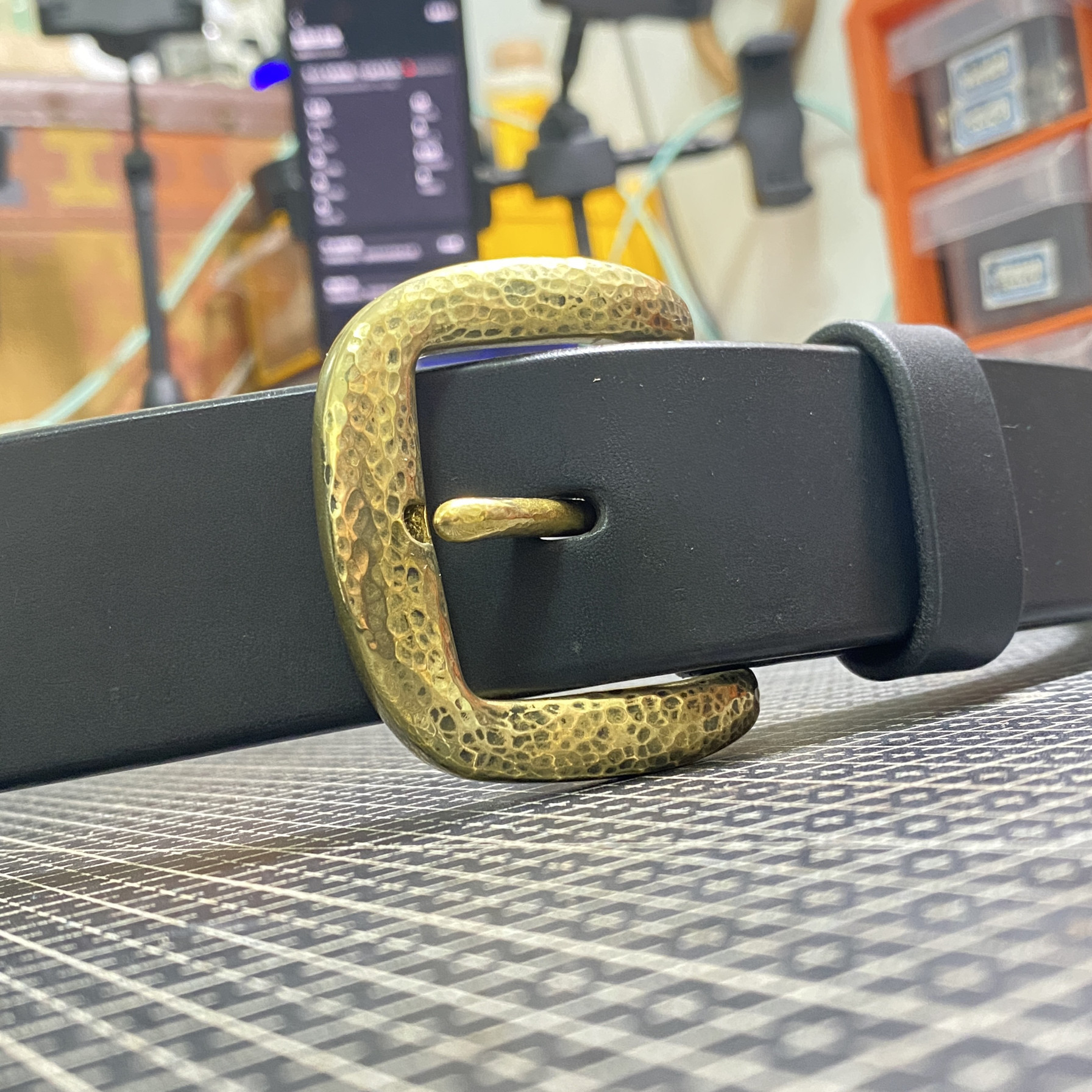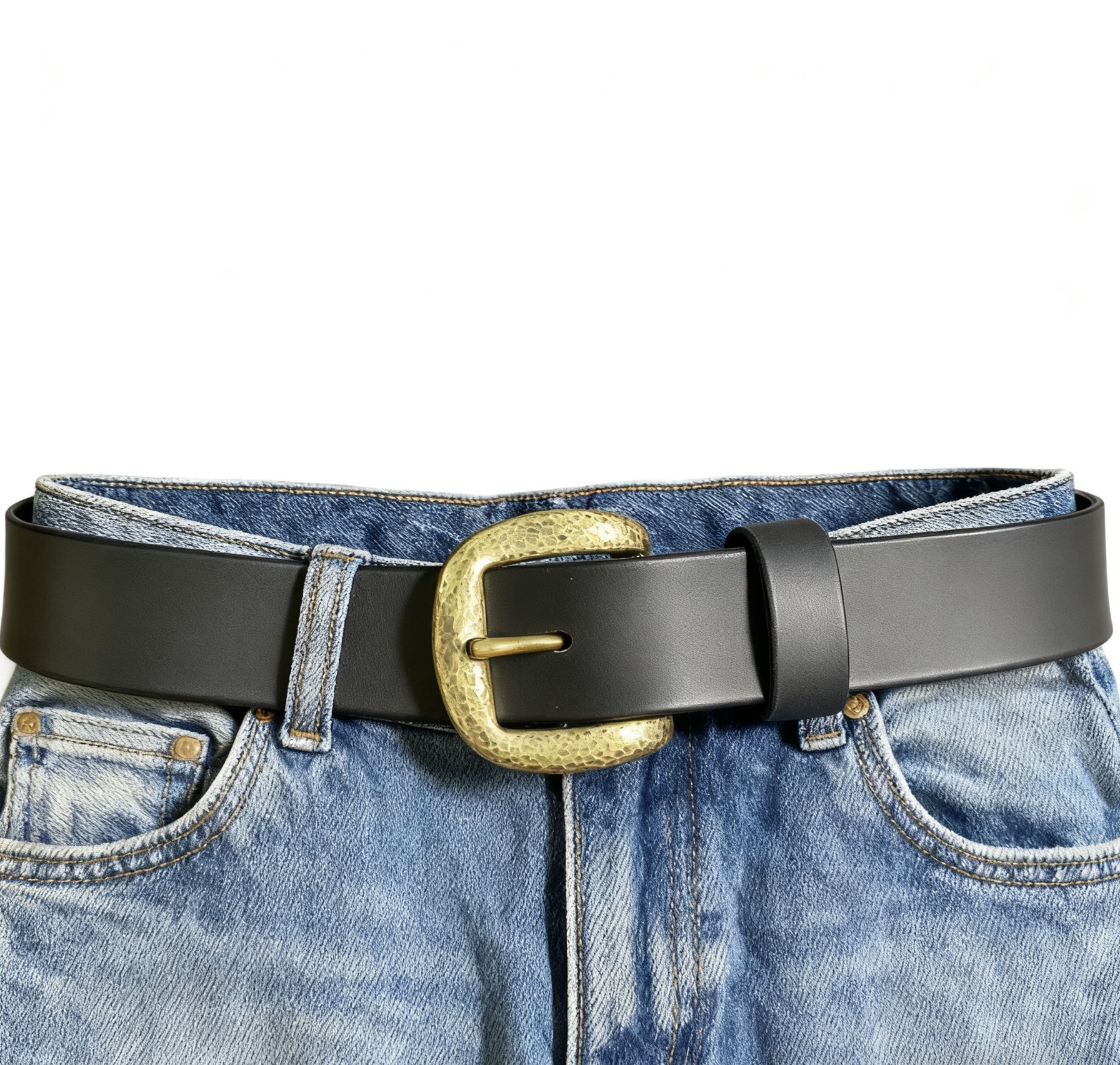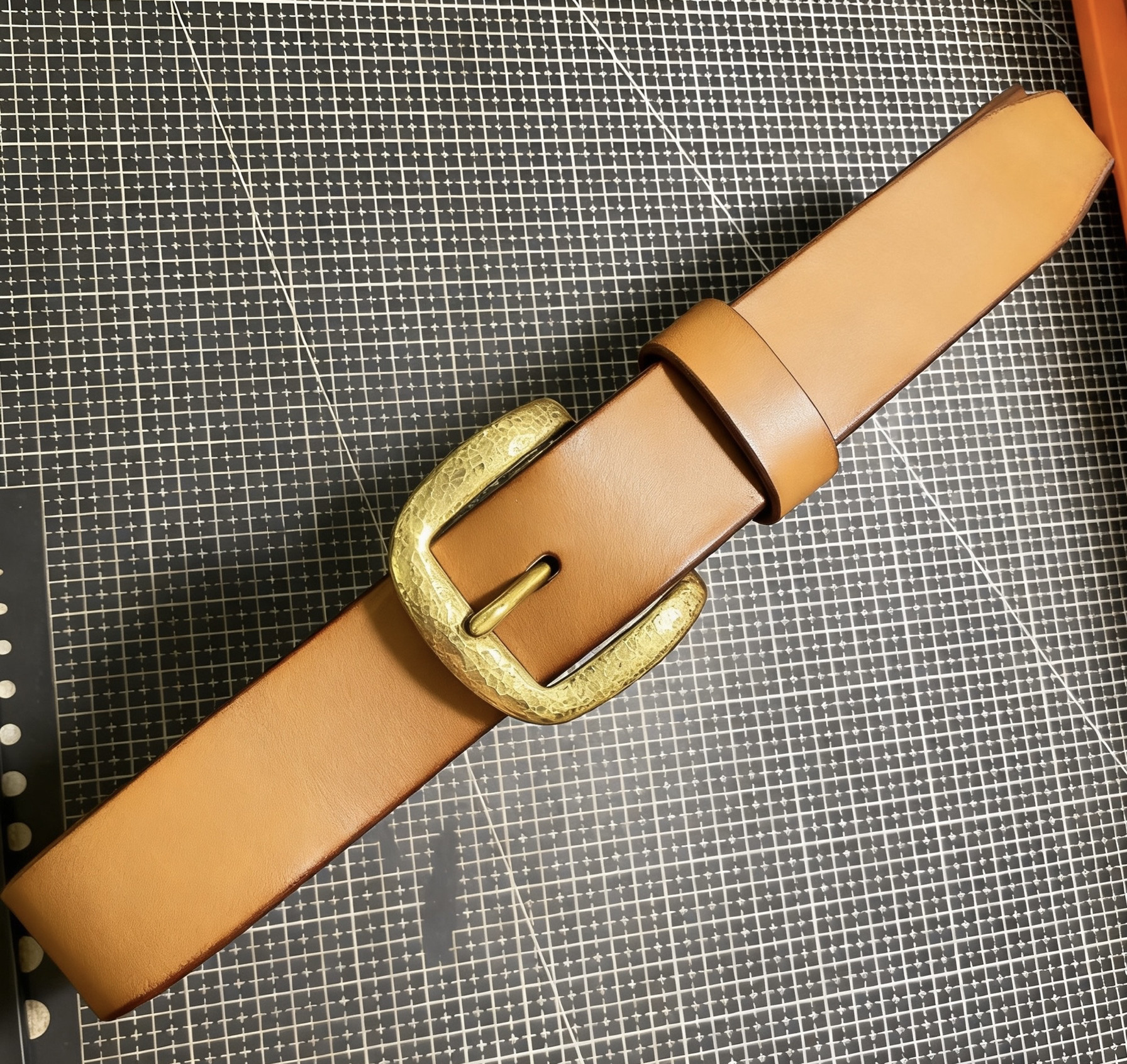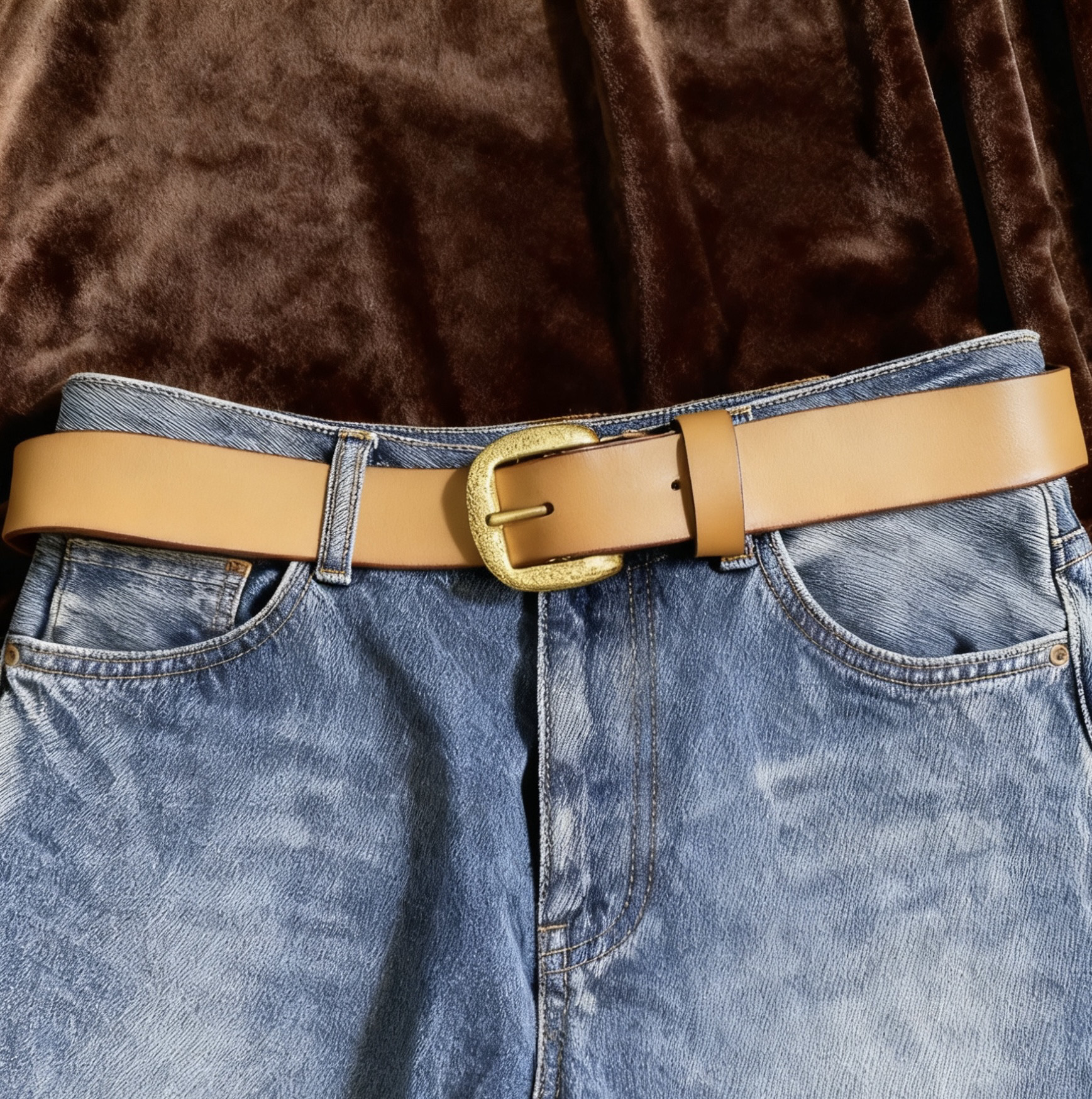 📚 手工植鞣皮带复古黄铜锤纹扣头层牛皮男士休闲百搭牛仔裤养牛皮带