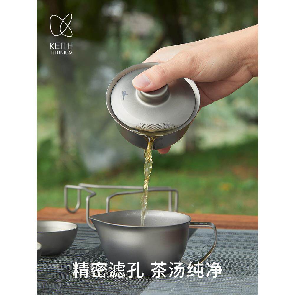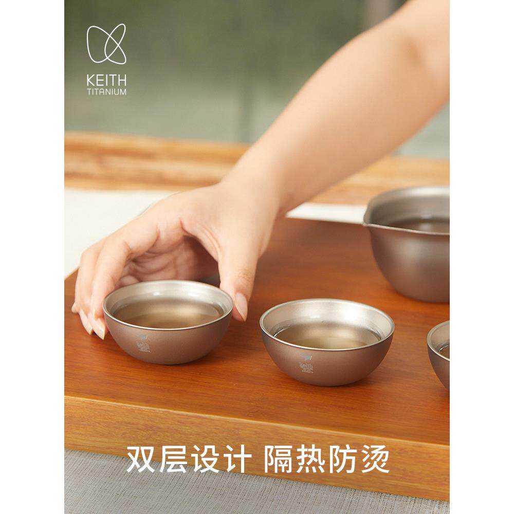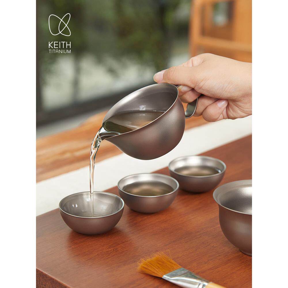 📚 基思纯钛功夫茶具家庭轻奢健康钛茶盖碗公平杯双层茶杯