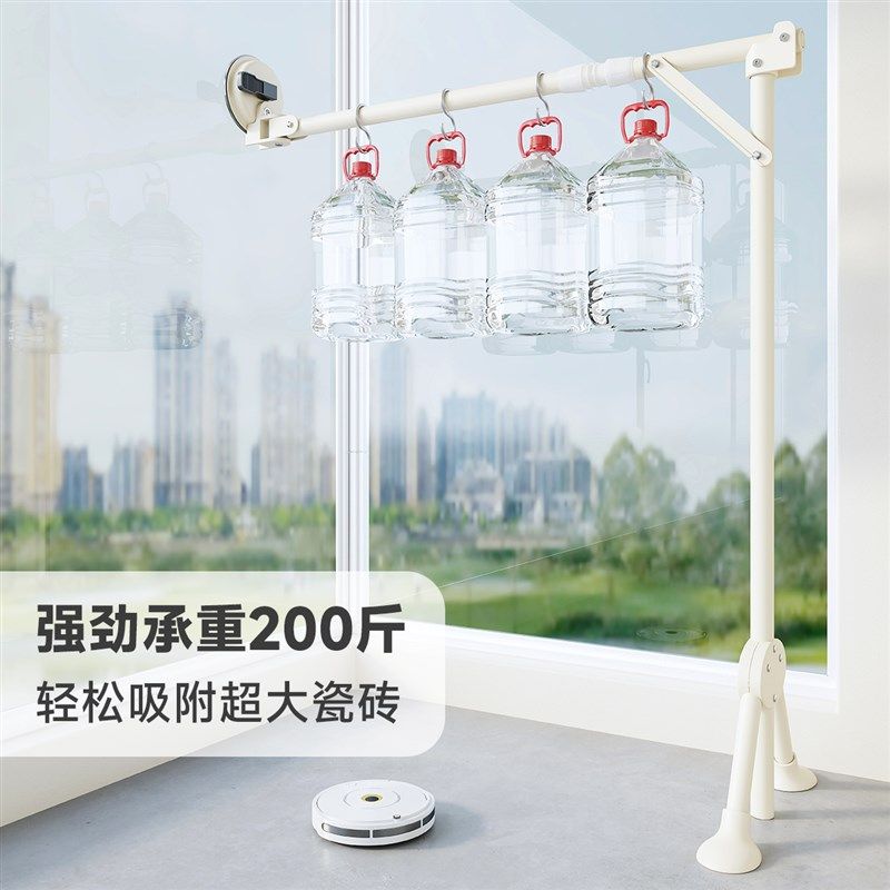 📚 吸盘折叠晾衣架室内阳台伸缩玻璃晒衣杆一根可移动晒被子神器挂衣