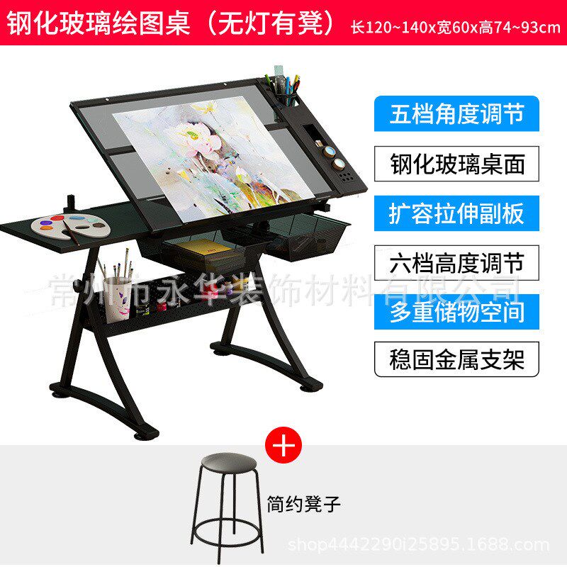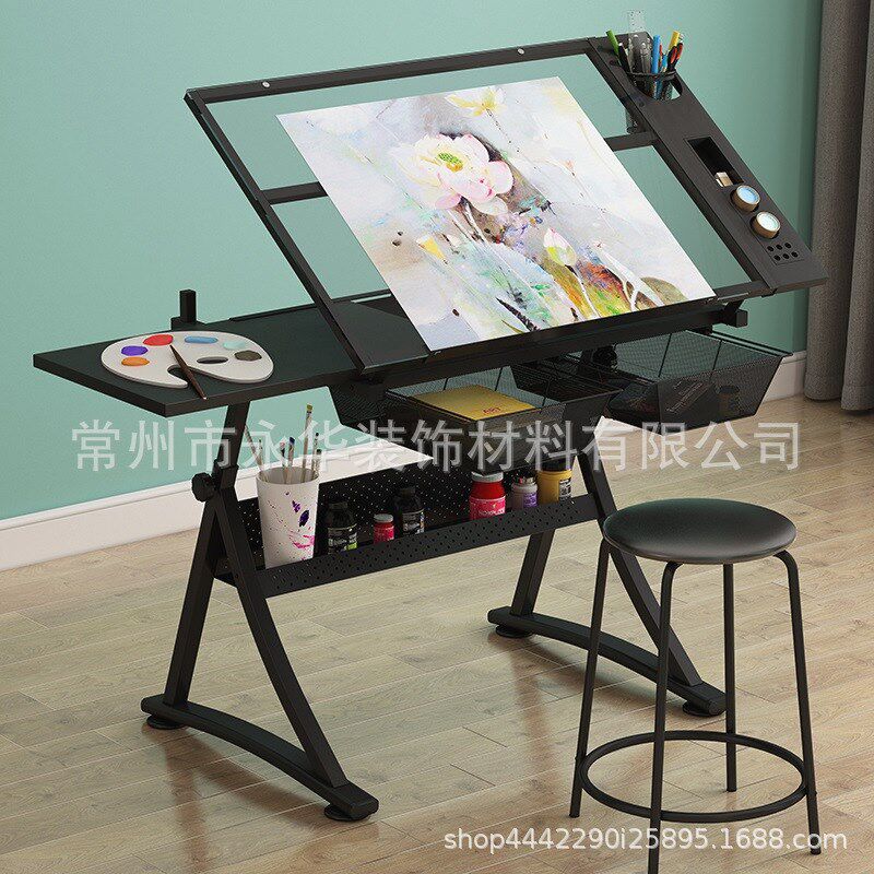 📚 绘图桌绘画可升降桌美术玻璃画画制图电脑设计师书桌工作台桌子