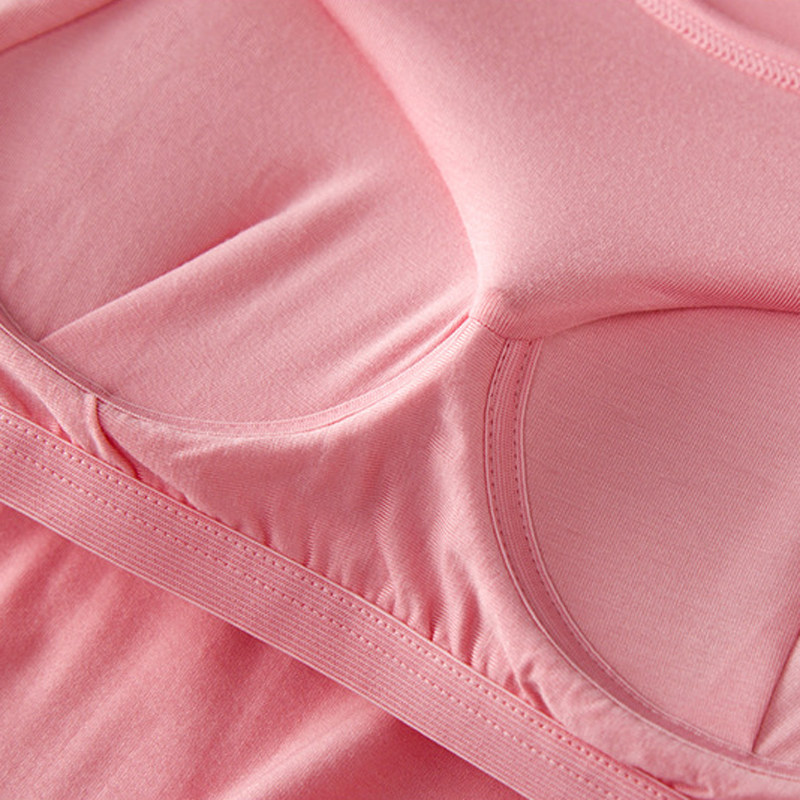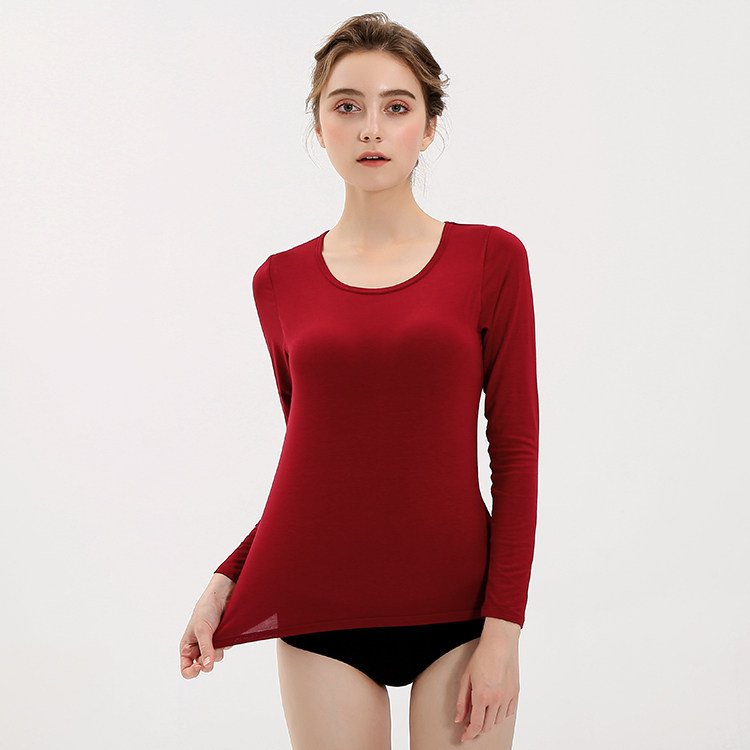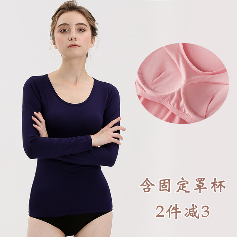 📚 莫代尔带胸垫长袖T免文胸bra-t罩杯一体瑜珈服修身打底衫家居服女