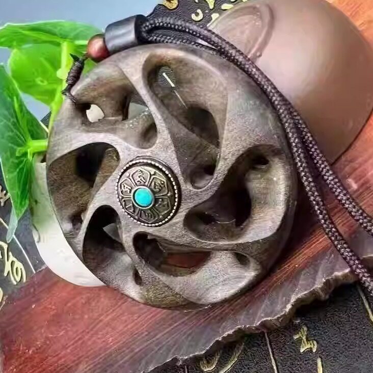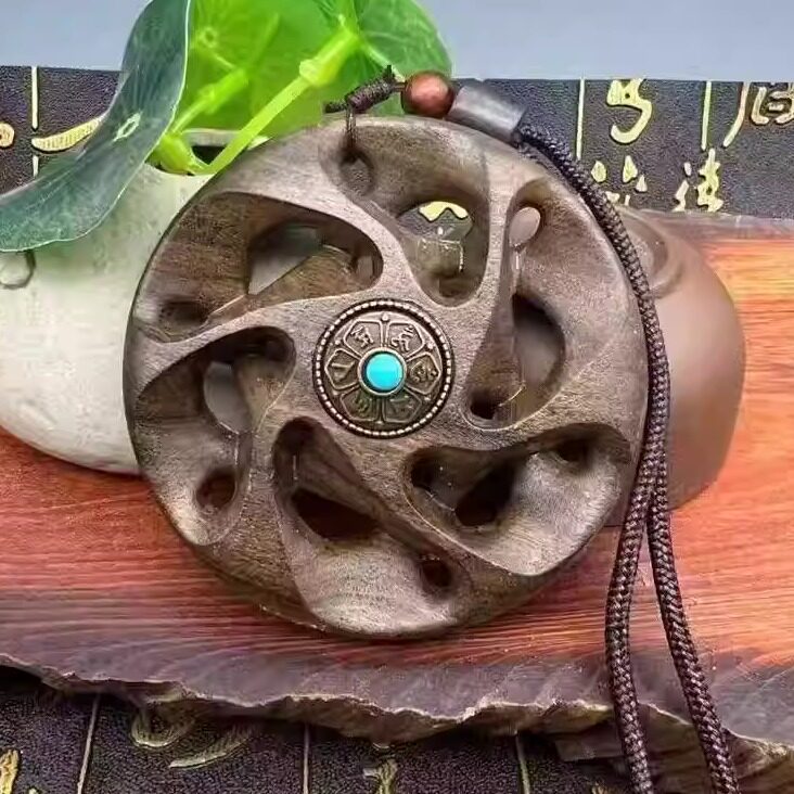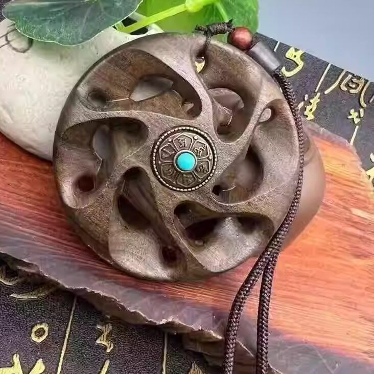 📚 沉香木雕刻时来运转手把件复古挂件六道轮回吊坠六字真言镂空古
