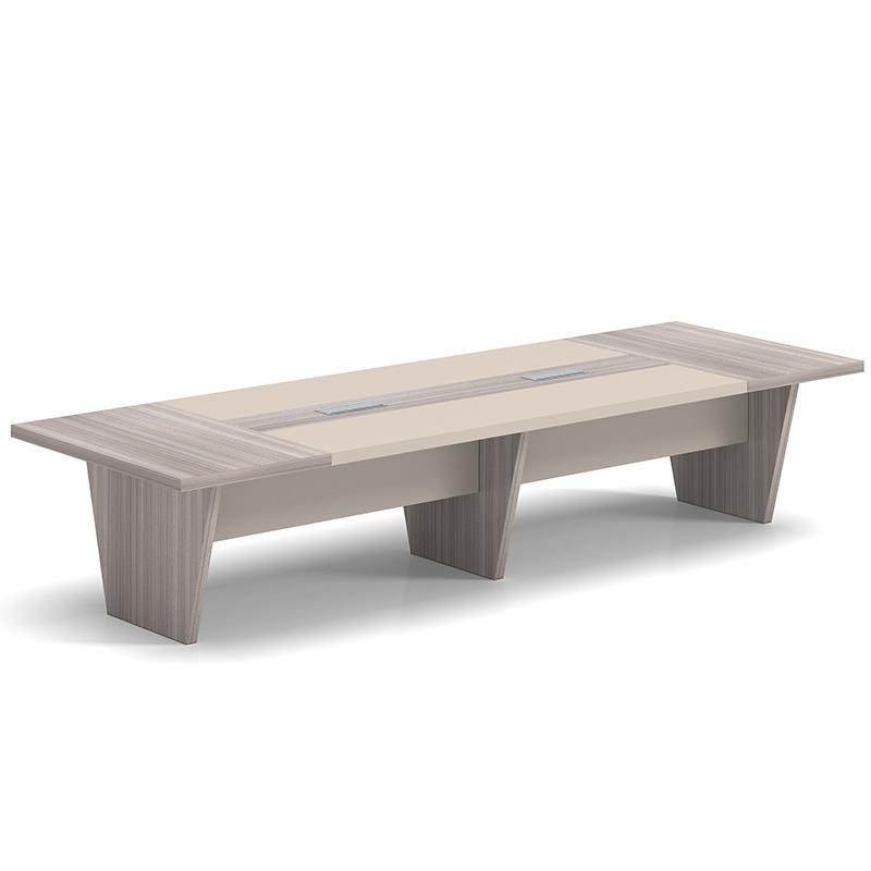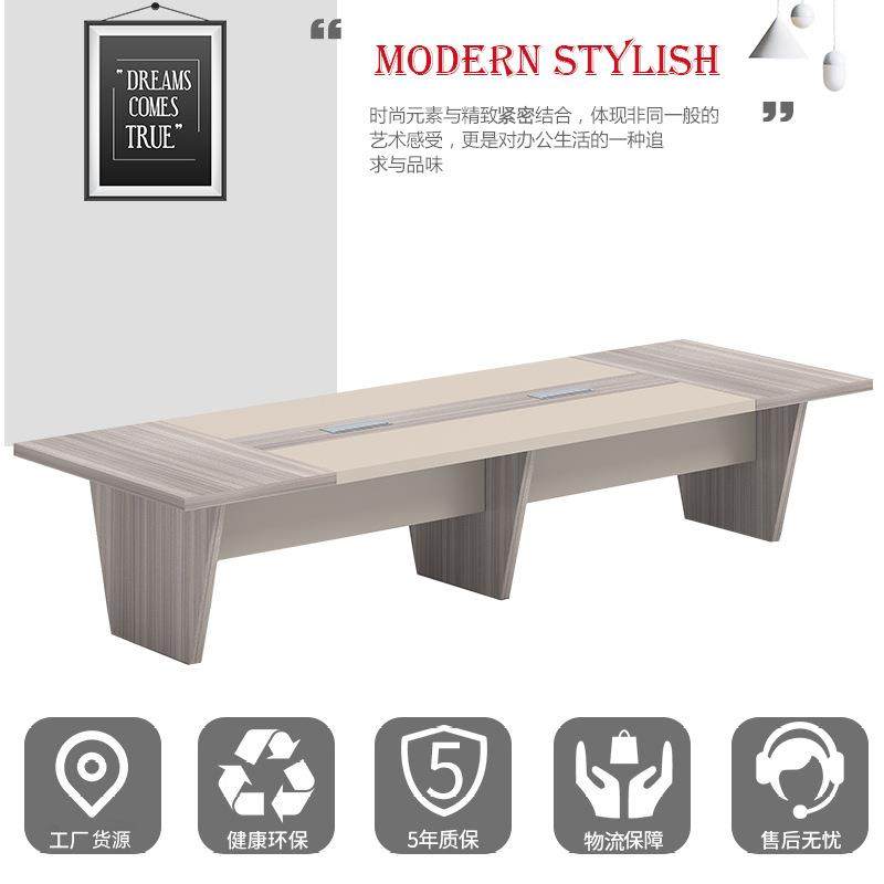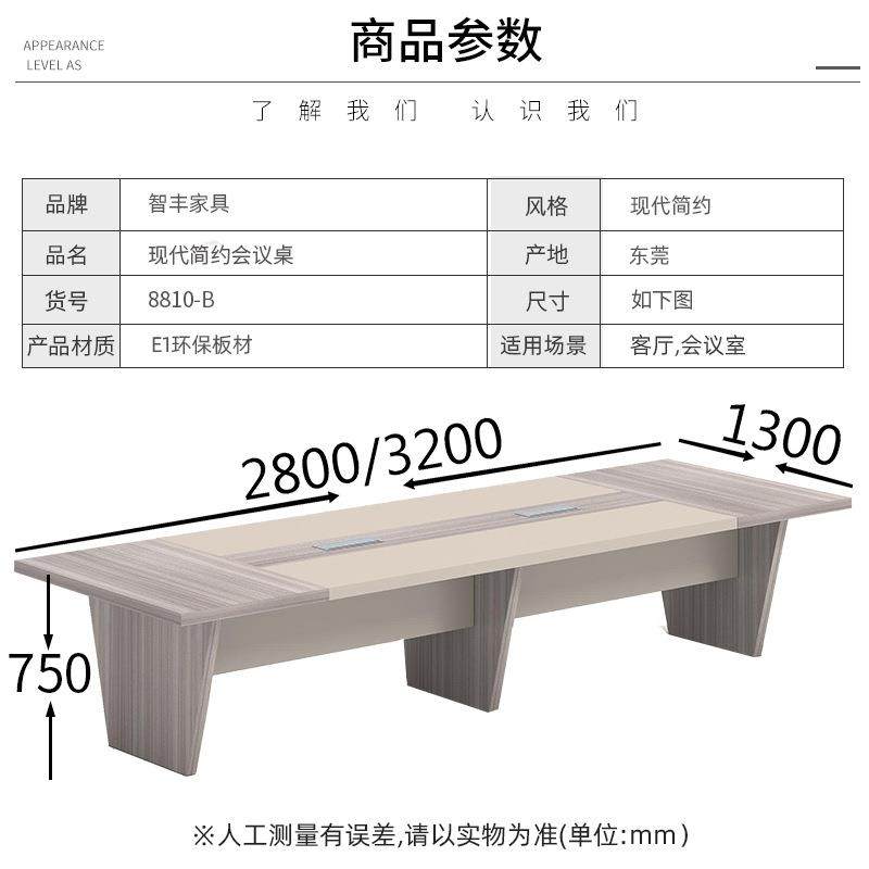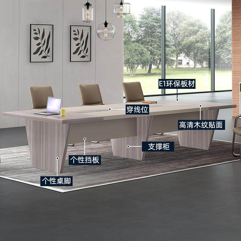 📚 浅卡其会议桌长桌简约现代商务条形木脚接待桌工作台洽谈会议台桌