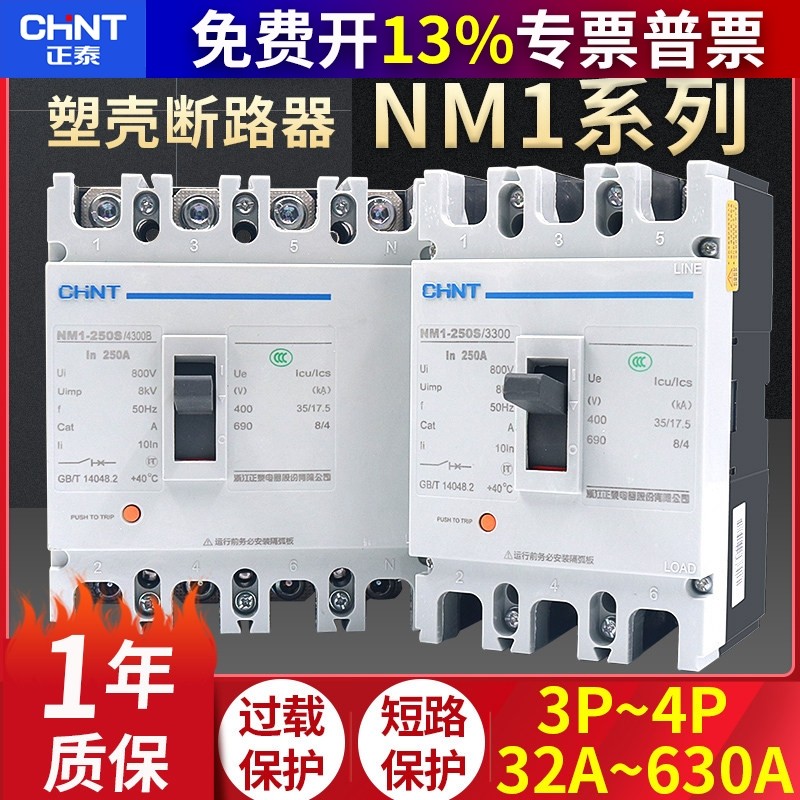 📚 正泰塑壳断路器100A空气开关3P三相四线4P空开NM1塑料外壳式100A