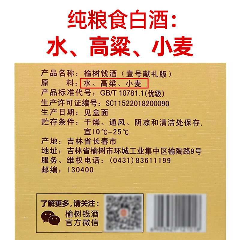 📚 榆树钱酒一号献礼版壹号 浓香型白酒纯粮食酒礼盒装过节送礼