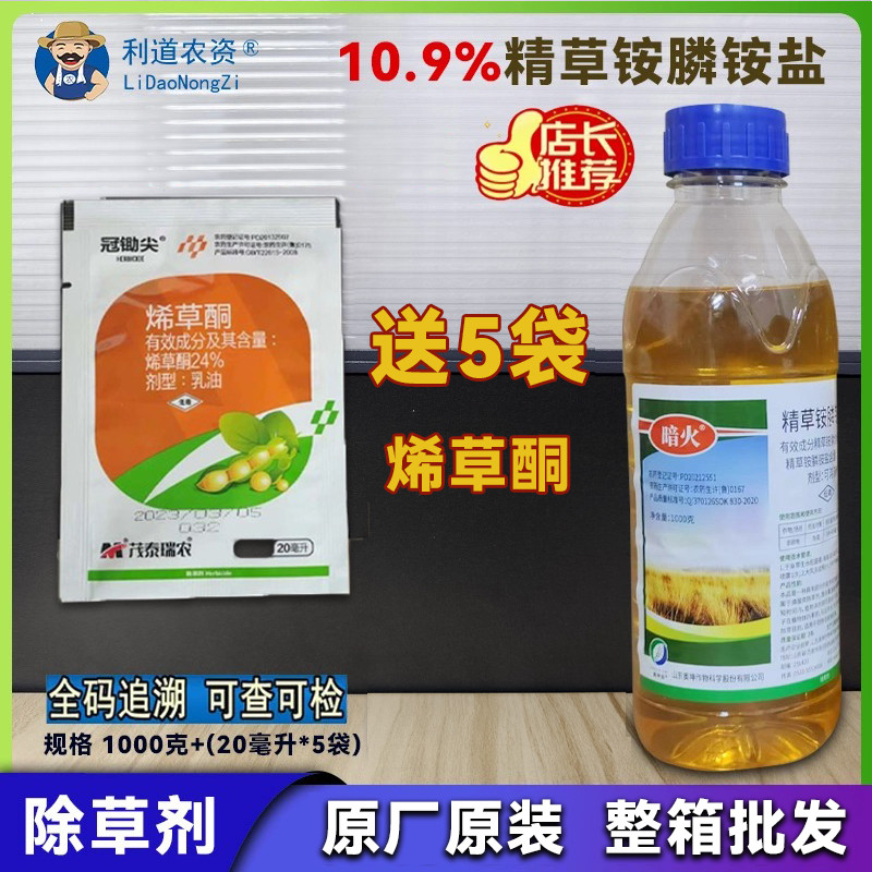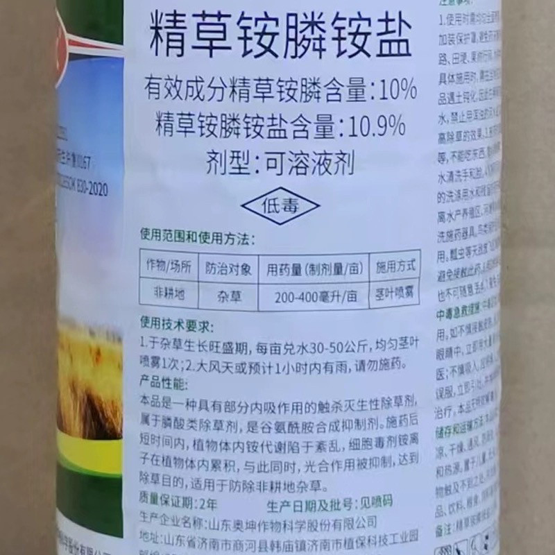 📚 奥坤暗火精草铵膦铵盐正牌触杀灭生性除草剂内吸作用杂草茎叶喷雾