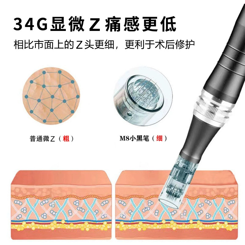 📚 韩国M8小黑笔微针头圆晶方晶36针飞梭中胚仪微晶MTS导入仪通用头