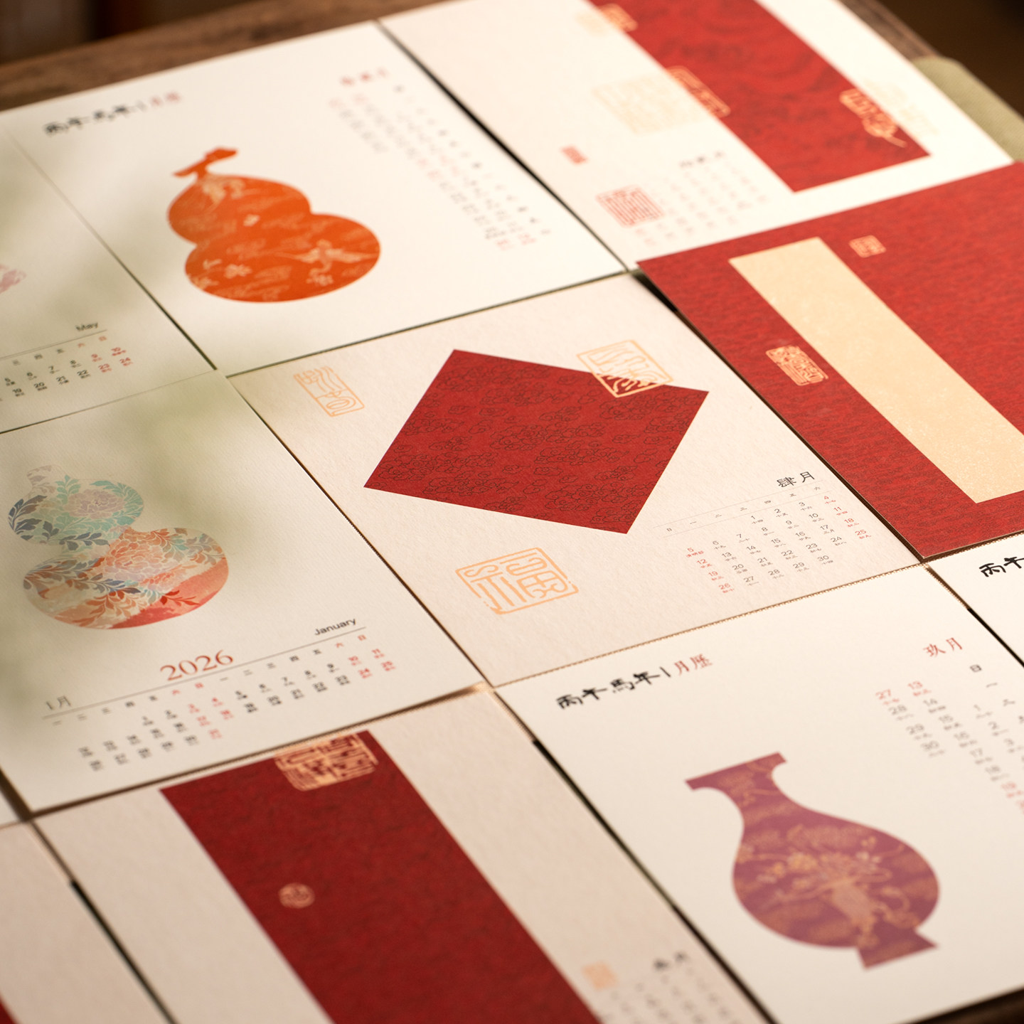 📚 张小凤 创意书法台历 2026年新款日历摆件桌面挂历月历周历马年空白毛笔书法diy宣卡纸简约古风摆台中国红