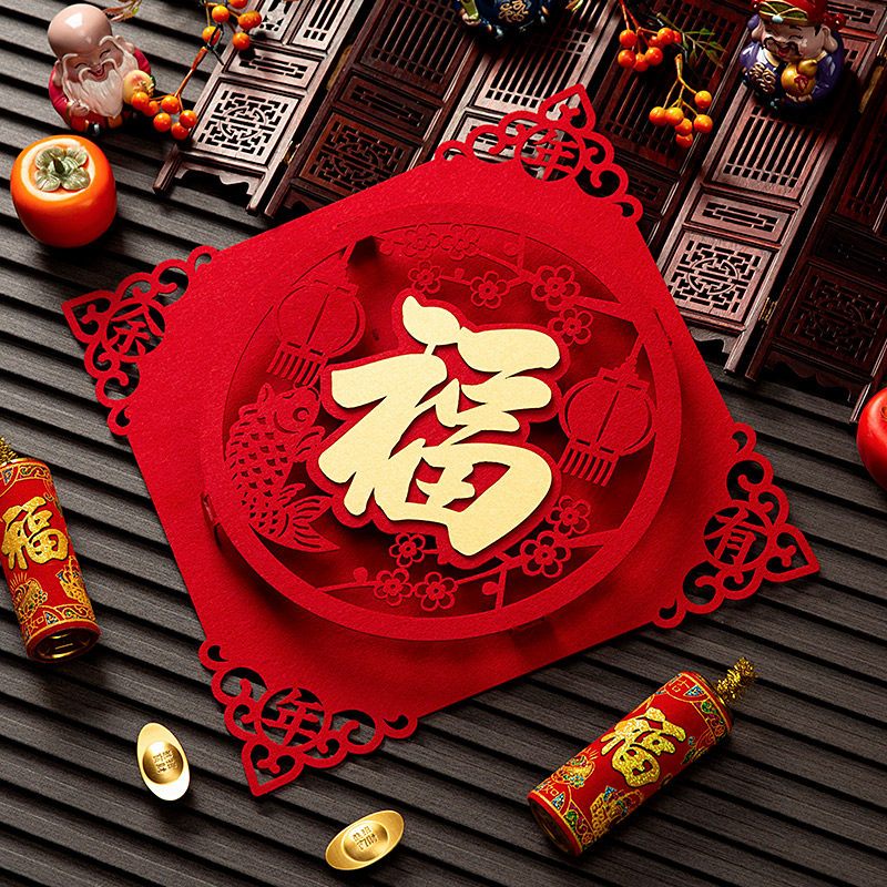 📚 2026春节装饰福字门贴装饰新年对联窗贴卧室门扇形高档防水玻璃贴