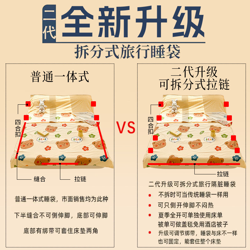 📚 住酒店隔脏睡袋旅行游单人床单被套便携式非全棉纯棉外出差可拆分