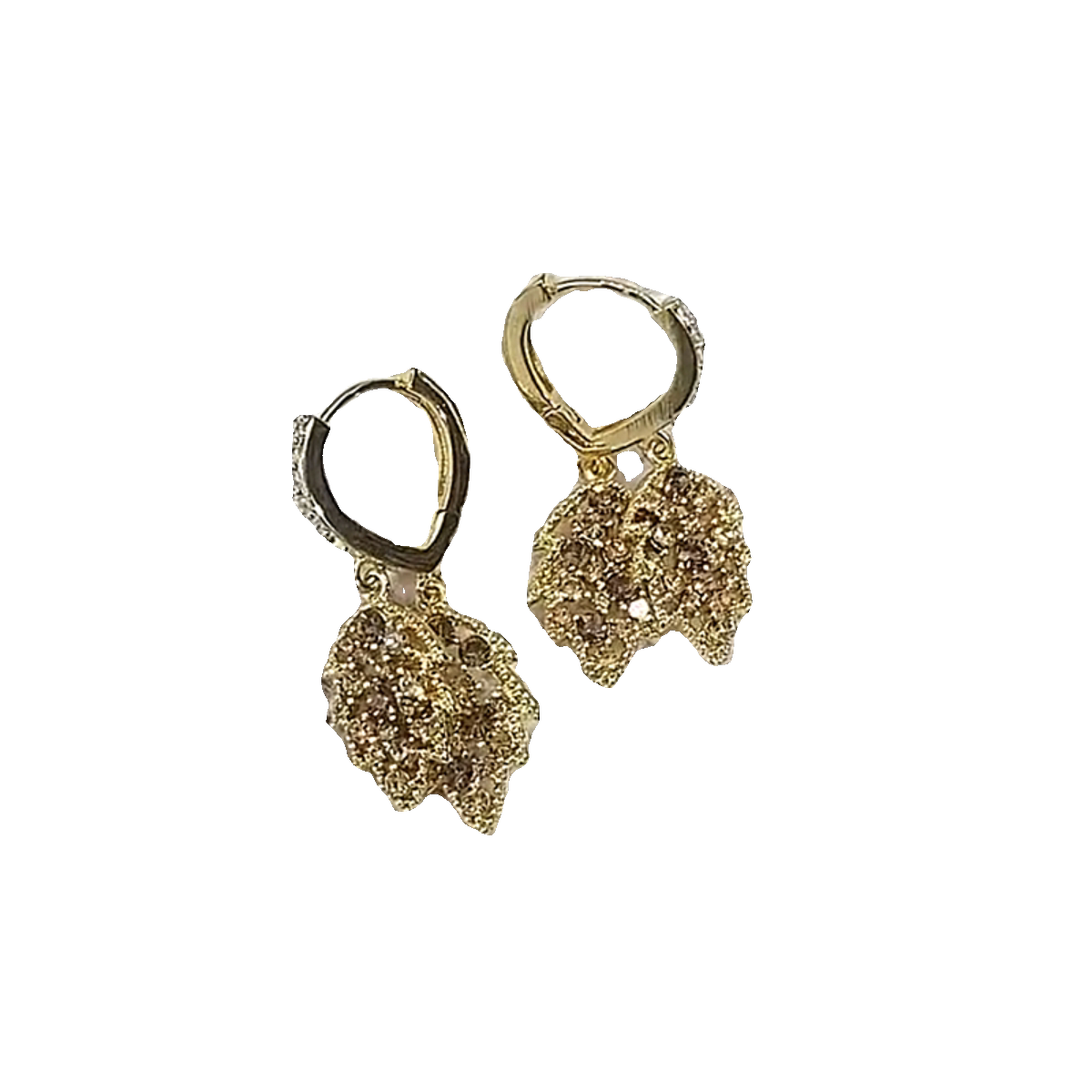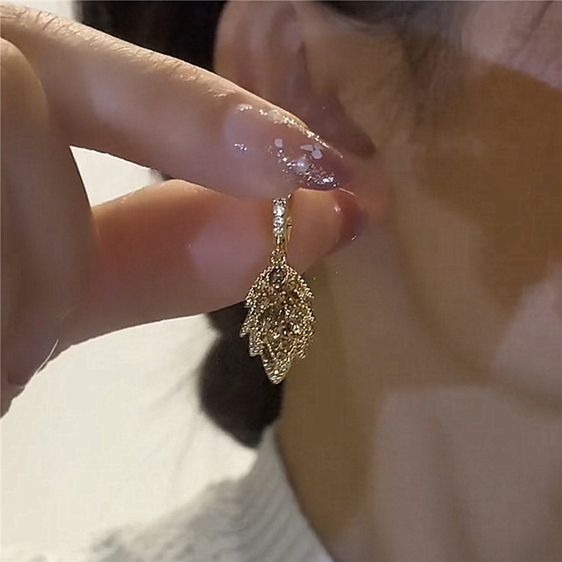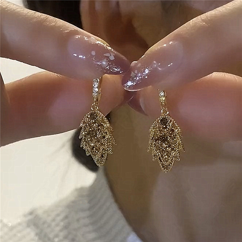 📚 轻奢高级咖色满钻叶子耳环韩版新款超闪锆石树叶耳饰气质简约耳坠