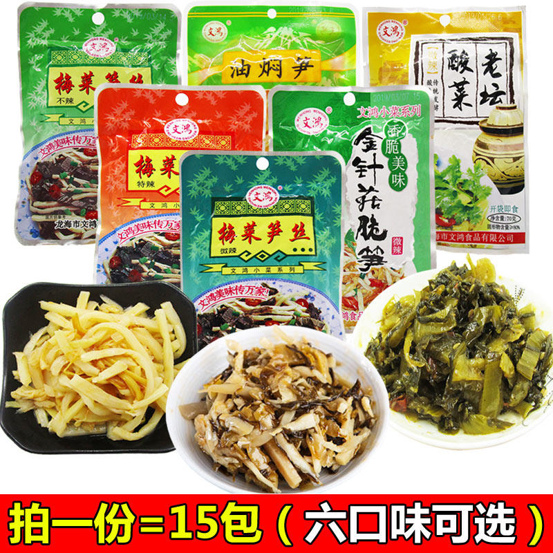 🍽️解锁美味新境界!文鸿梅菜笋丝、金针菇金菇脆笋油焖脆笋老坛酸菜混搭15包装,券后价21.8,我的美食宝藏时刻�