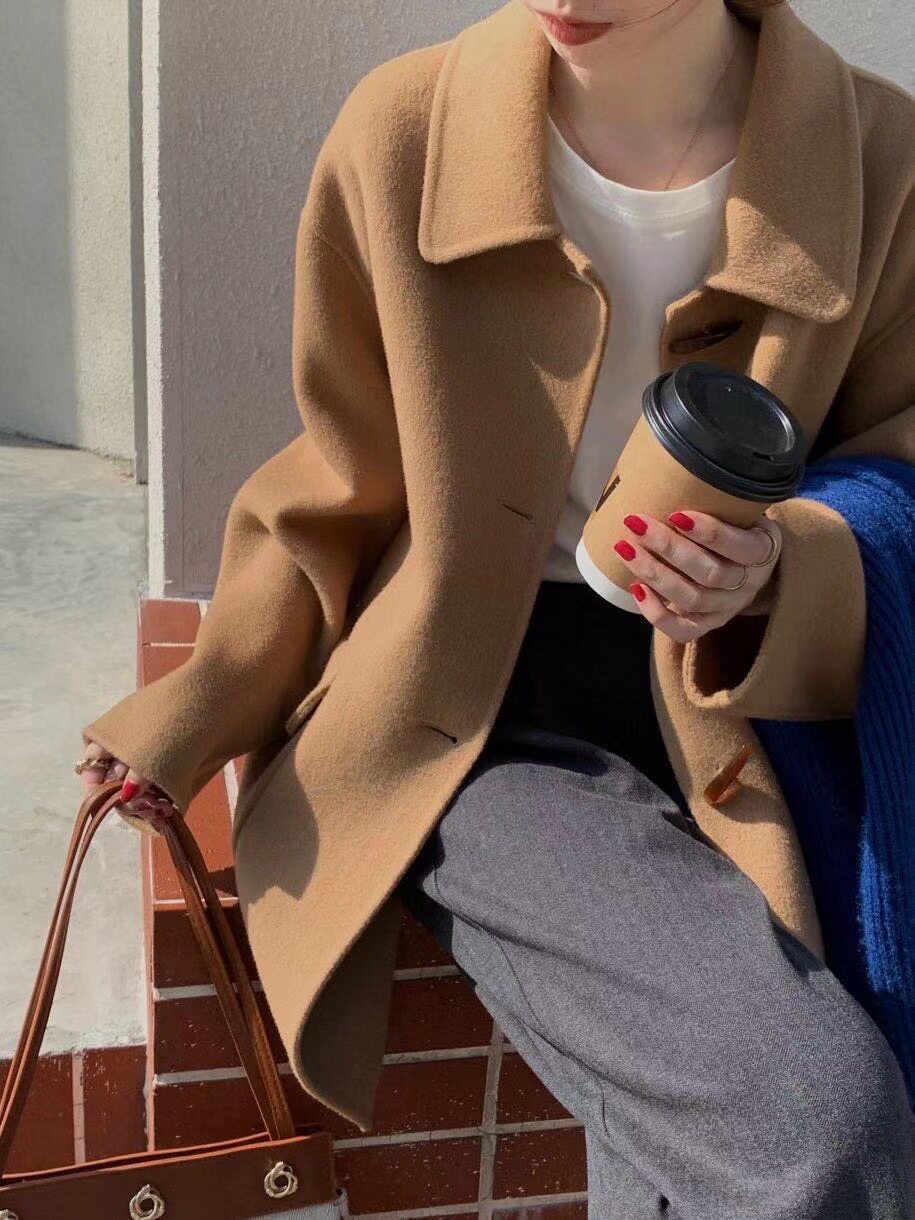 📚 双面羊绒大衣女2024年新款高端100纯羊绒短款小个子韩系毛呢外套