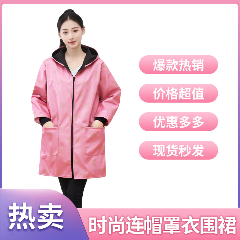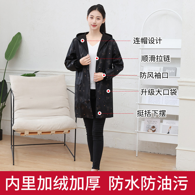 📚 秋冬防水罩衣男女大人家用厨房围裙防尘加绒大褂工作服长袖外套女