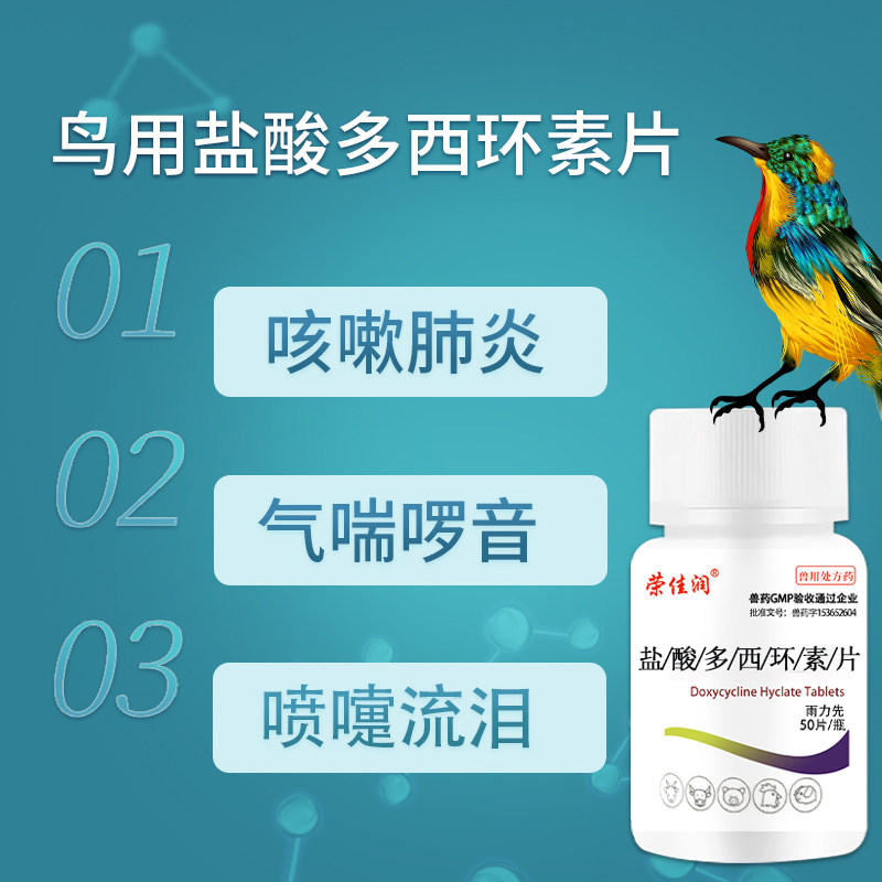 📚 盐酸多西环素片鸟用虎皮玄凤鹦鹉鸽子呼吸道咳嗽张嘴喘气衣支原体