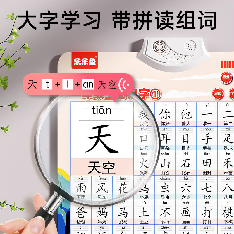 📚 乐乐鱼识字有声挂图一年级上册全套幼小衔接儿童认字自然拼读发音