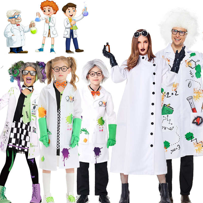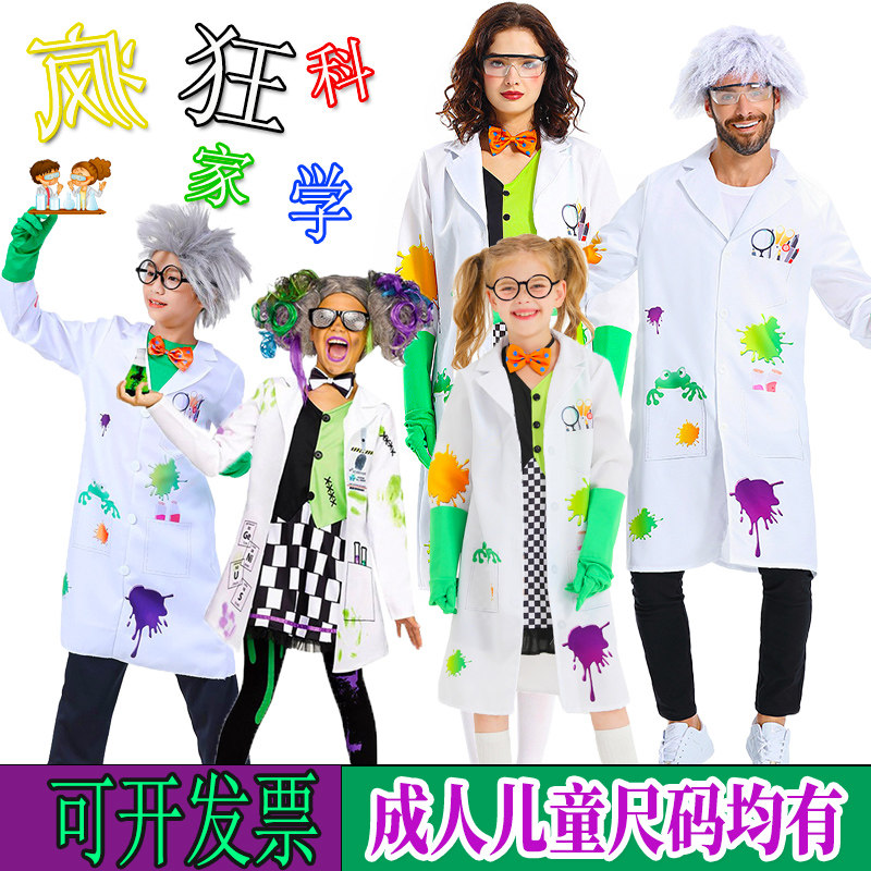 📚 万圣六一节科学家怪人爱因斯坦白大褂cos服装儿童成人角色扮演