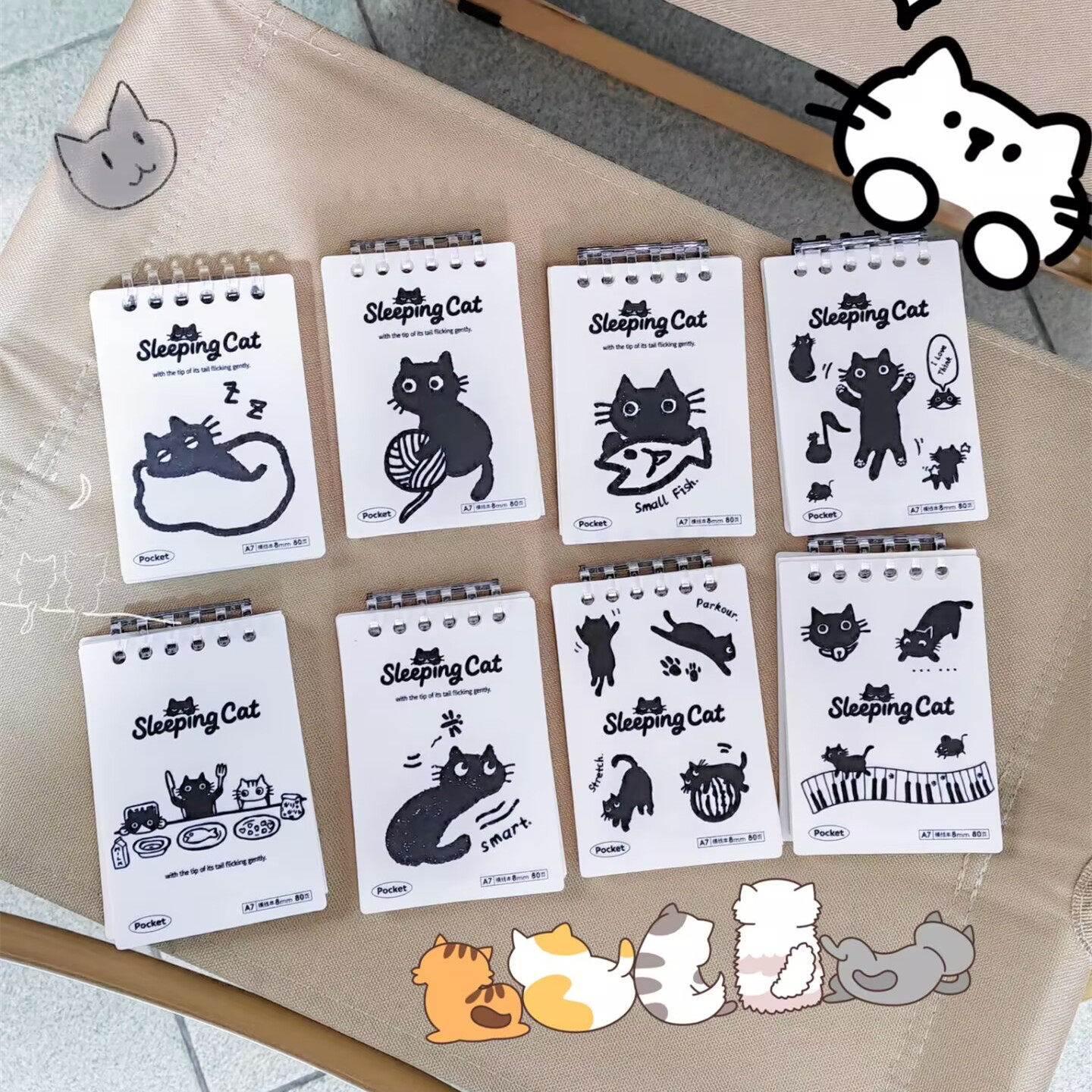 📚 枥木一品A7贪睡猫可爱随手活页猫咪记事本环扣式迷你型口袋线圈本