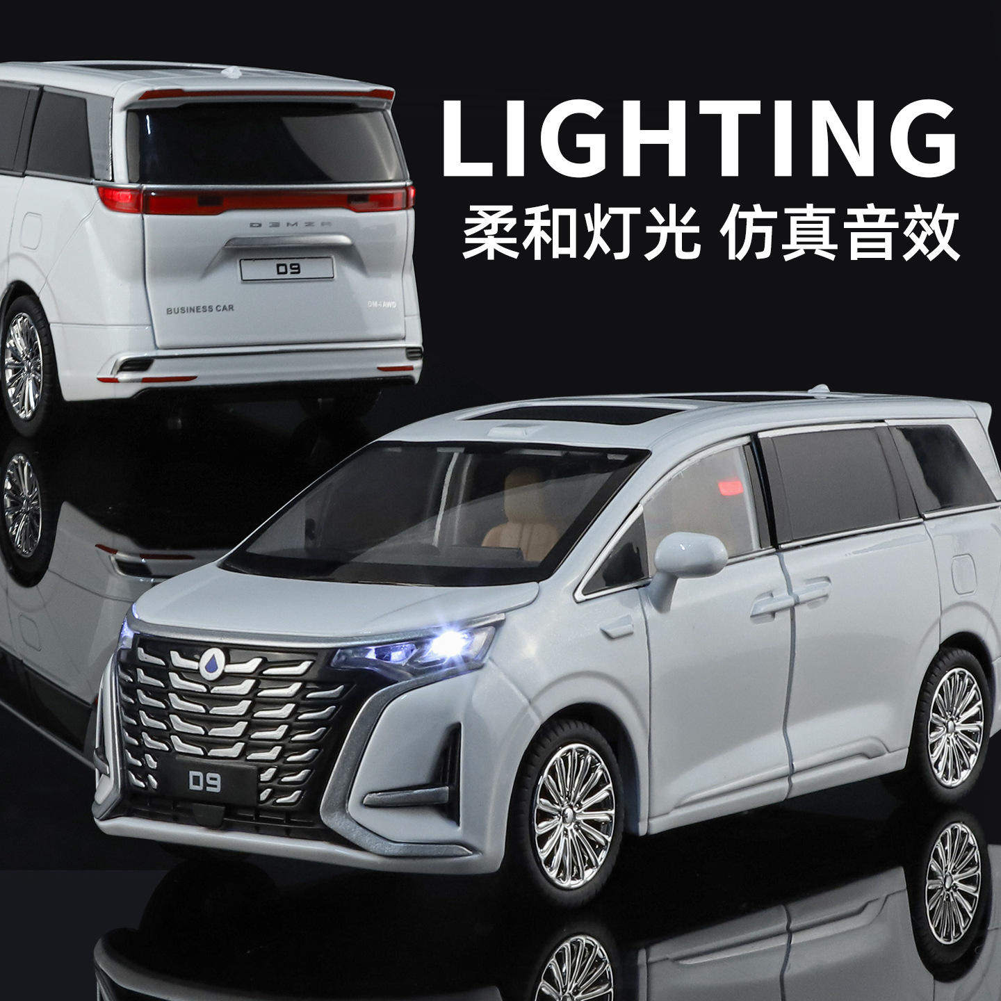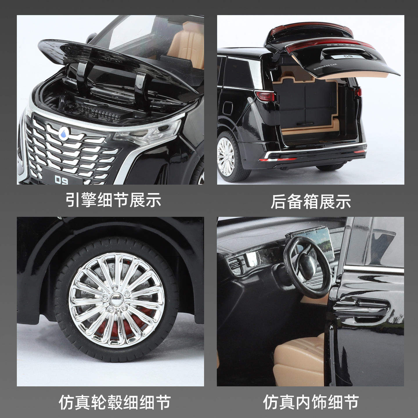📚 宏森智冠合金车模1:24腾势D9商务车带声光音乐模型摆件开窗盒