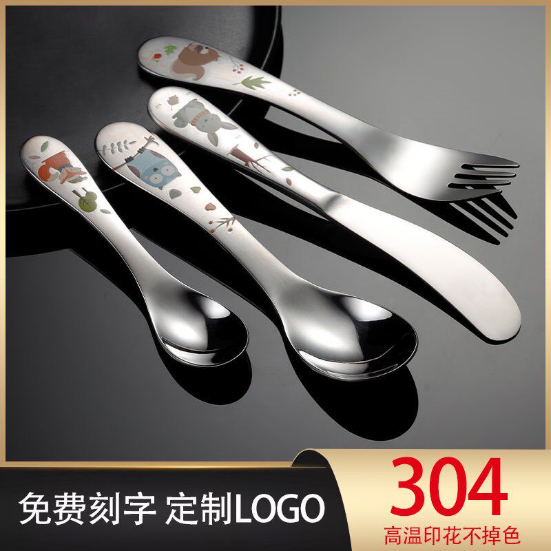 📚 儿童刀叉勺套装304不锈钢卡通西餐餐具幼儿园学生刻字定制叉子勺