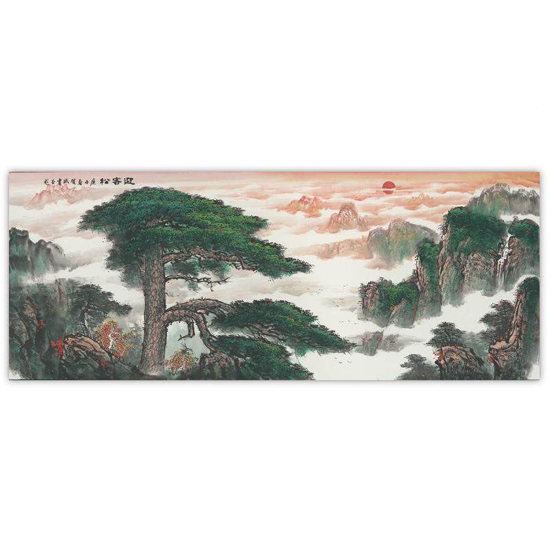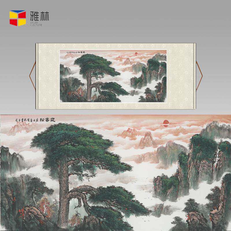 📚 迎客松山水国发画客厅沙背景墙艺装饰画术微喷联横幅画HB-迎客芯