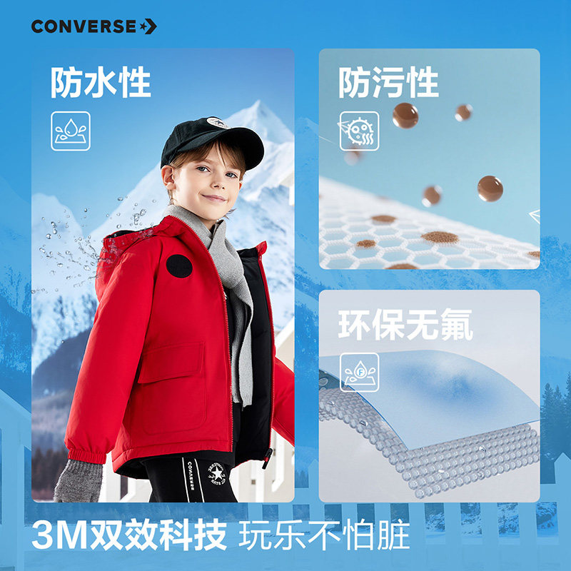 📚 【双面穿】匡威儿童装男女童红色羽绒服冬季短款防风防污保暖外套