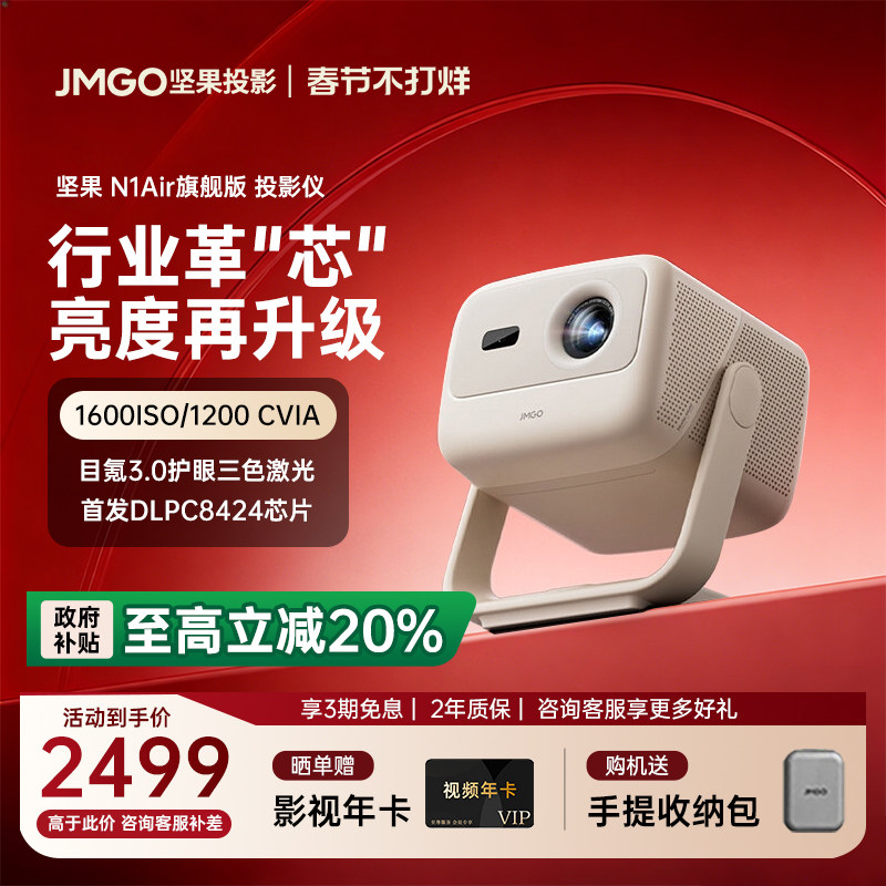 📚 【重磅新品 全国补贴20%】坚果N1 Air旗舰版超亮版三色激光投影仪家用超高清卧室客厅投墙可连手机投屏投影机