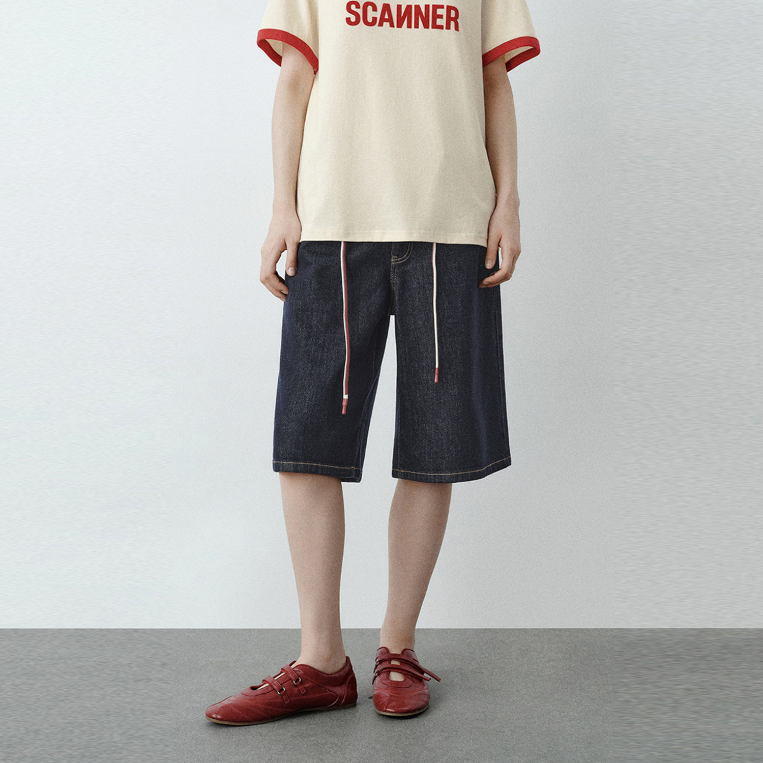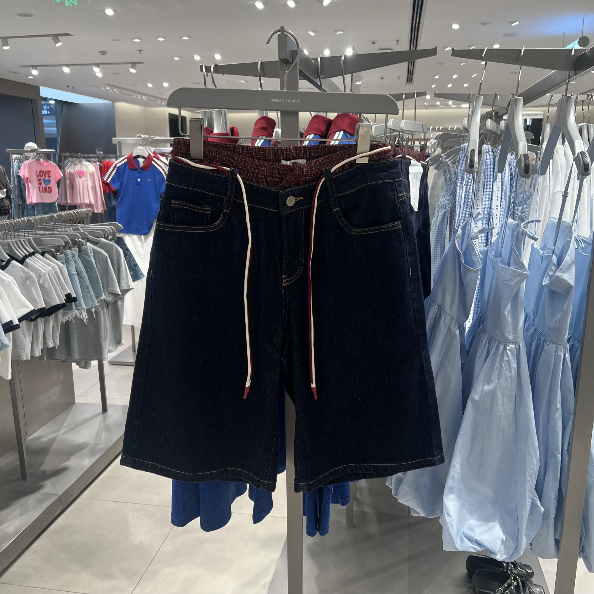 📚 UR国内代购2025秋季女装丹宁回潮撞色拼接抽绳牛仔短裤UYL850151