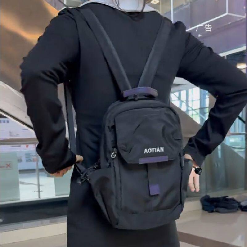 📚 2026刺绣字母渐变反光男水杯位斜挎胸包双肩9.7寸IPAD伞游玩小包