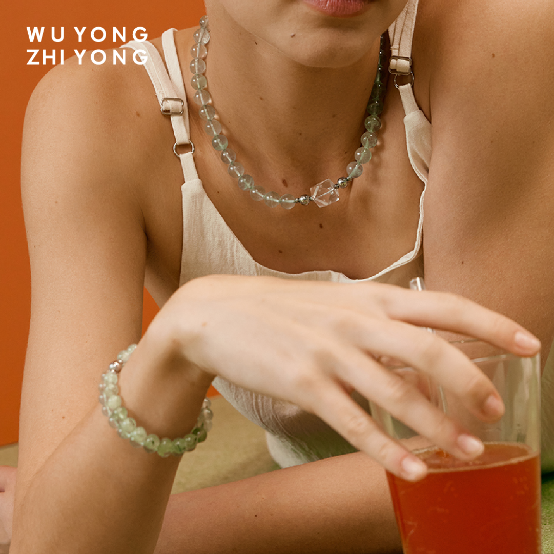 📚 无用之用「悠然意趣」天然绿萤石圆珠手链手串清冷感原创设计女款