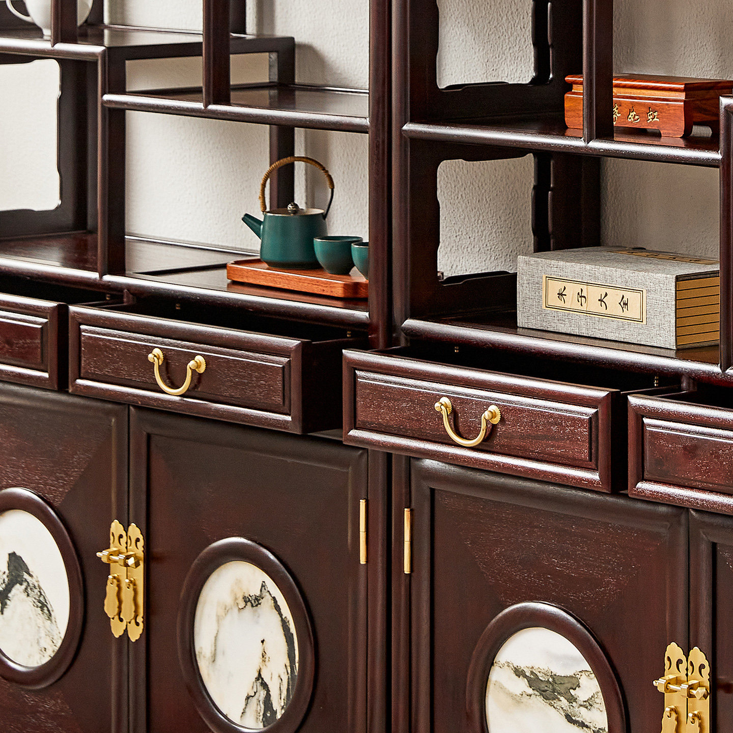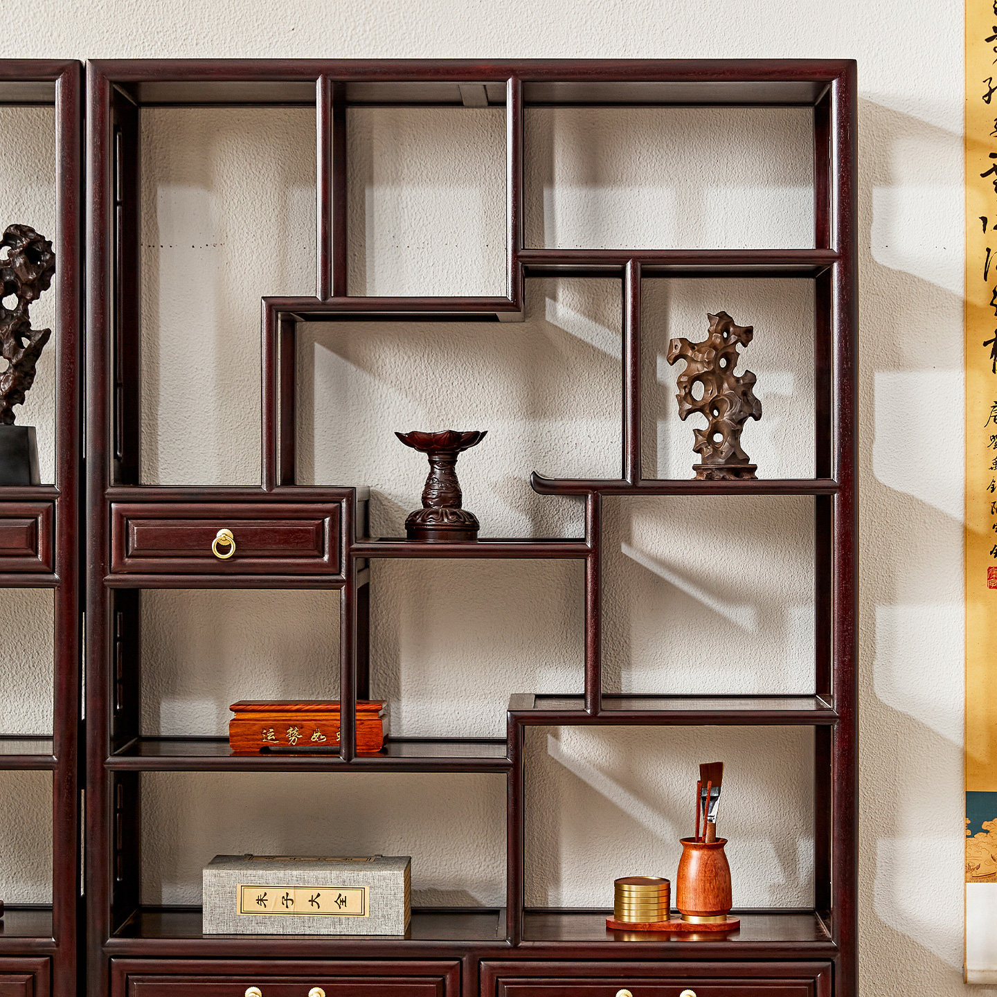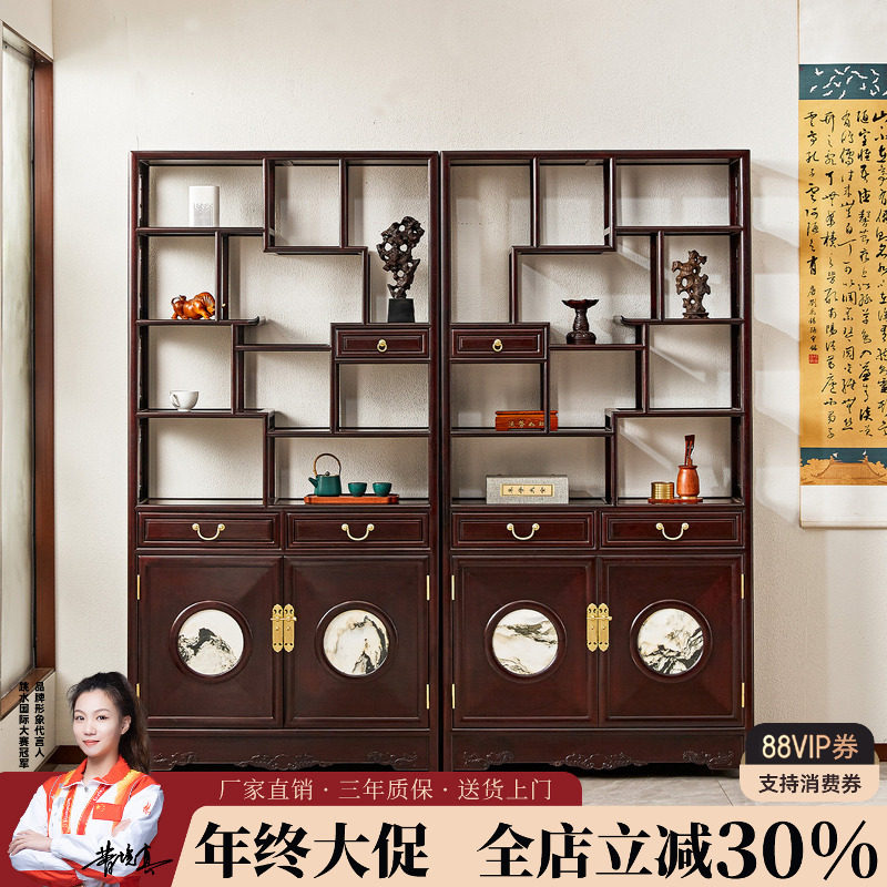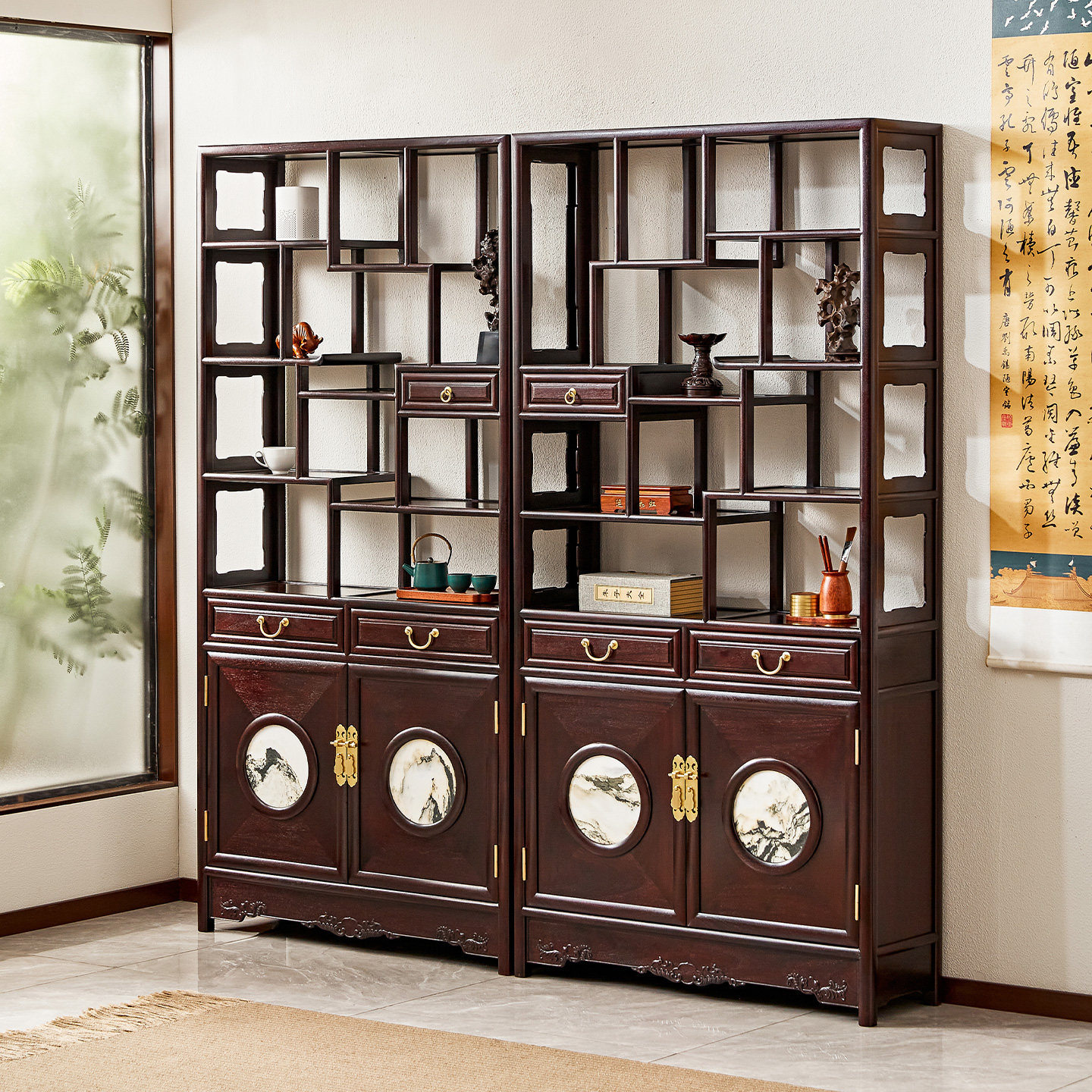 📚 赞比亚血檀博古架带云石中式多宝阁全实木非洲小叶紫檀茶叶架红木