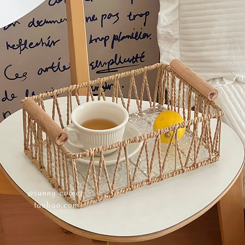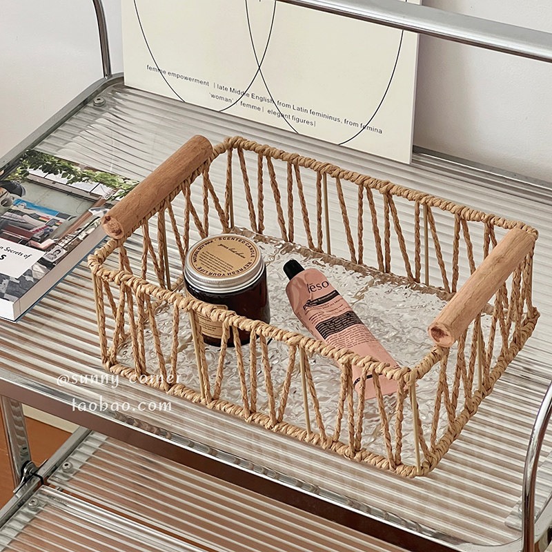 📚 ins复古铁艺手提收纳筐长方形桌面储物编织整理框水果杂物收纳篮