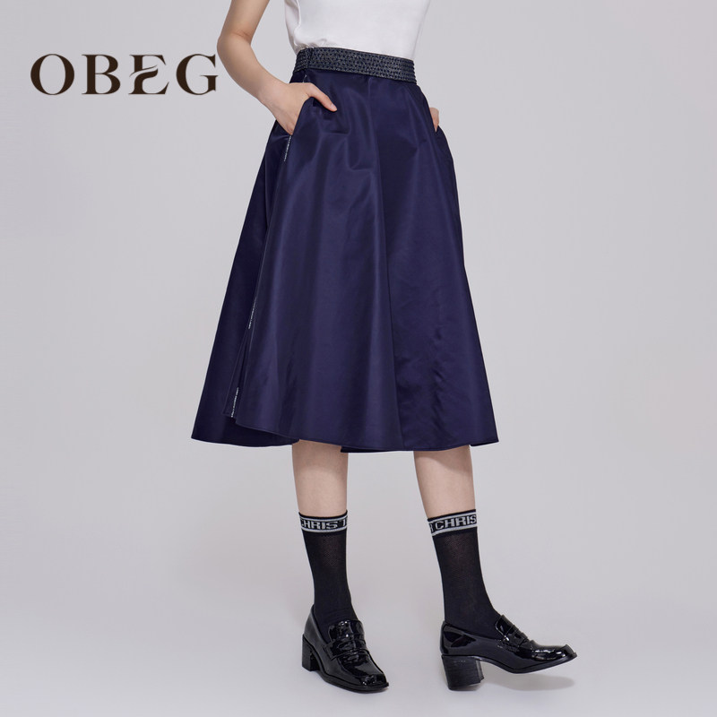 📚 OBEG欧碧倩春季高腰风衣料廓形半身裙10443056