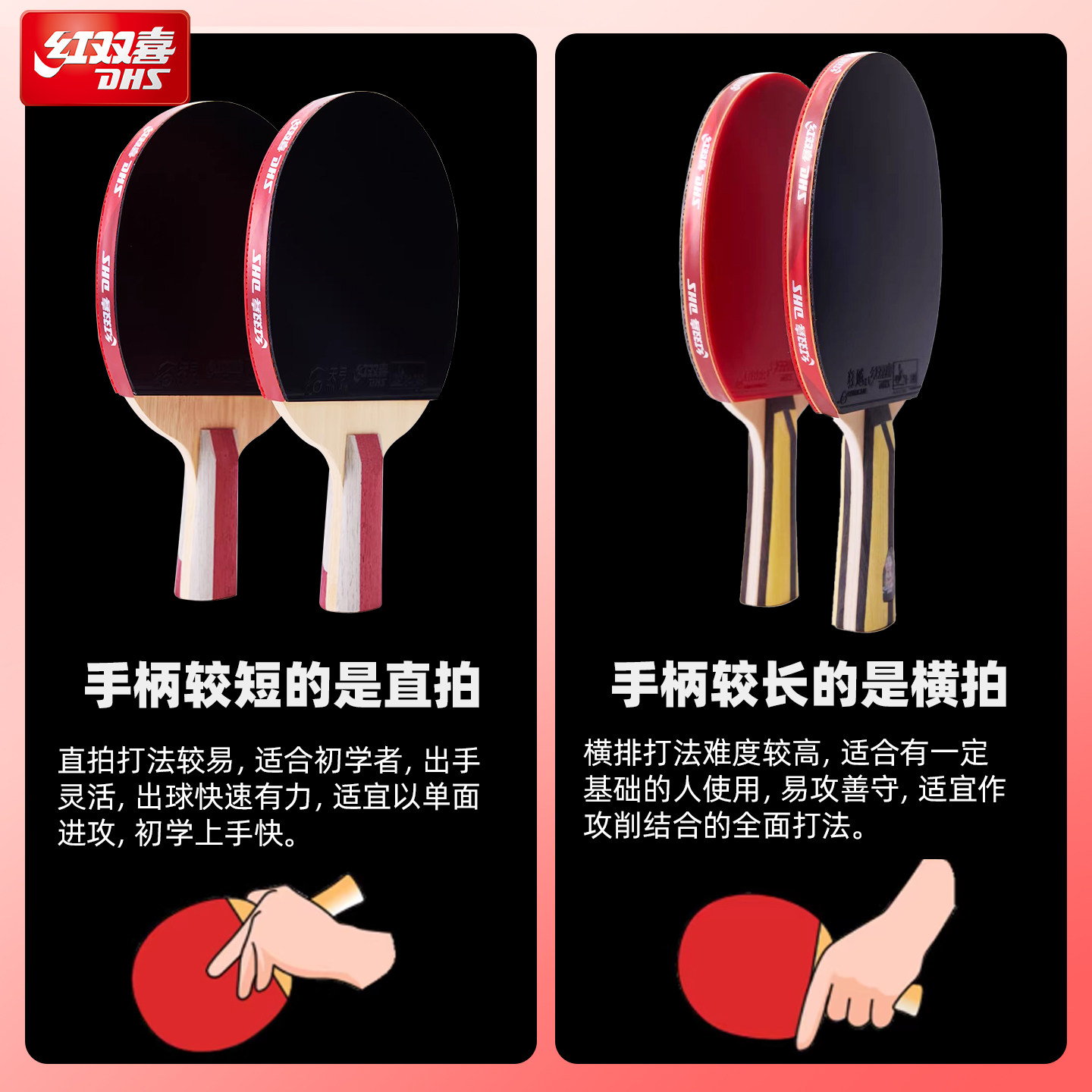 📚 十大名品牌红双喜乒乓球拍小学生专用单拍1只装直拍横拍12345星级