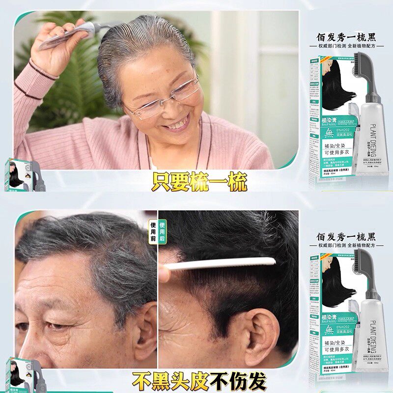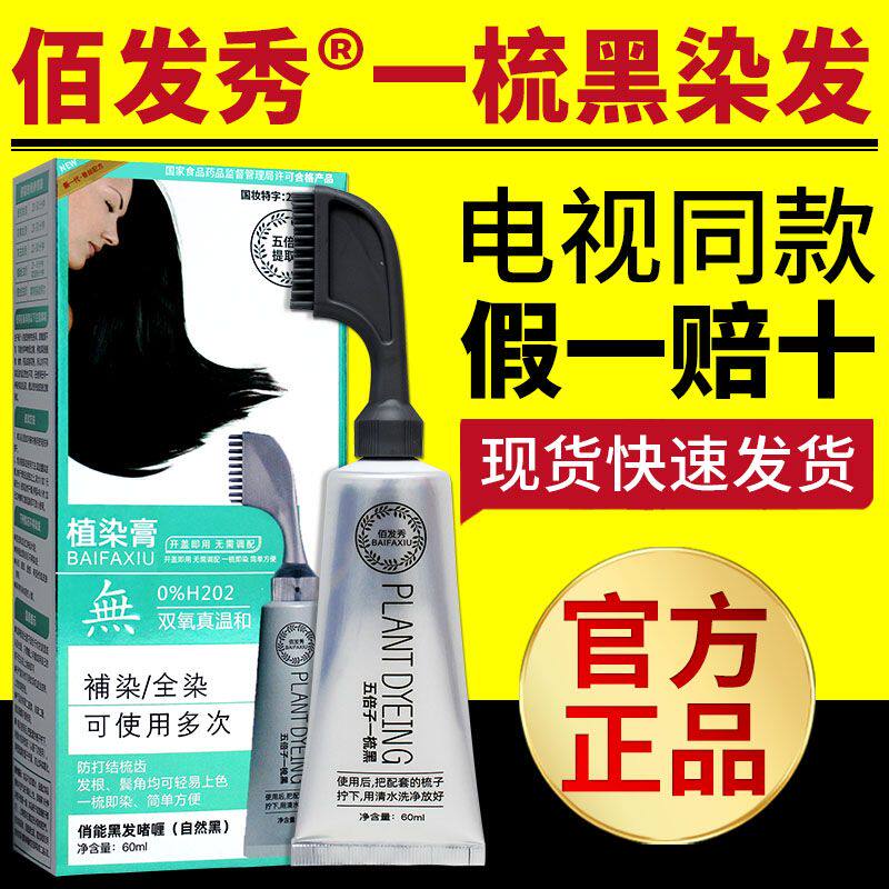 📚 佰发秀一梳黑染发剂遮白发一洗黑纯植物正品自然黑不沾头皮染发膏