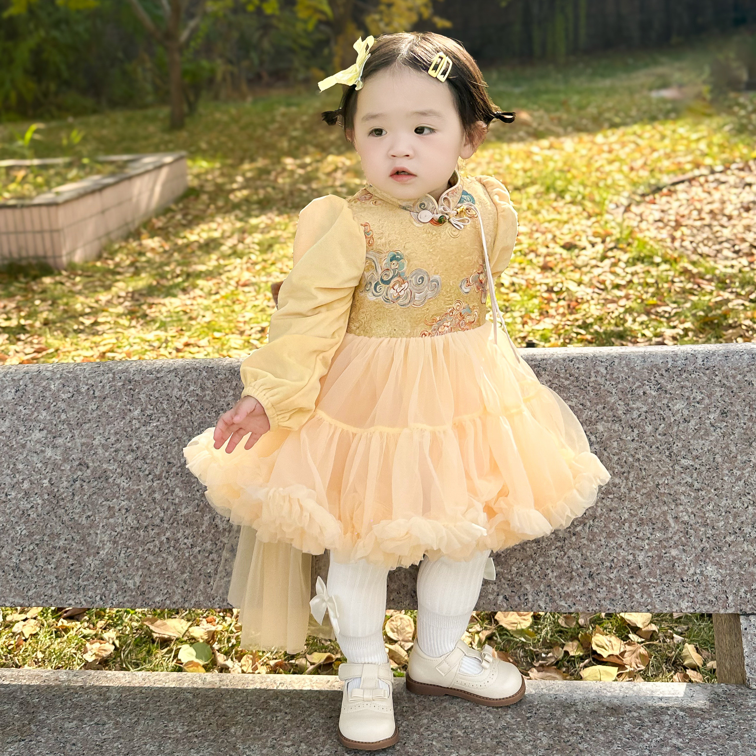 📚 2026夏季新款小女孩中国风旗袍拼接网纱tutu连衣裙蓬蓬纱汉服超仙