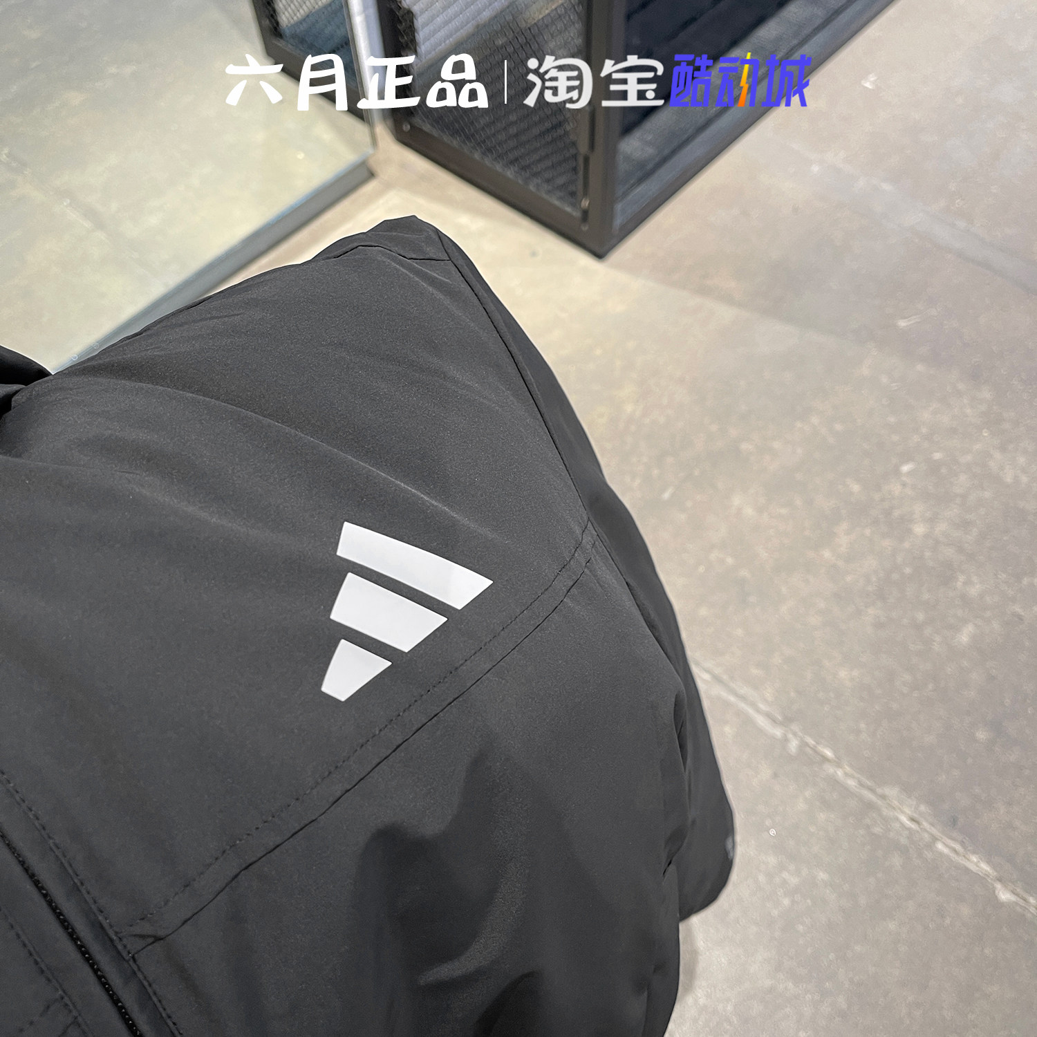 📚 专柜正品阿迪达斯冬季男子黑色外套三条杠保暖羽绒服上衣 JG3845