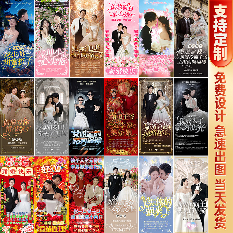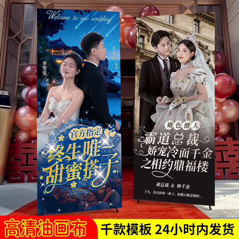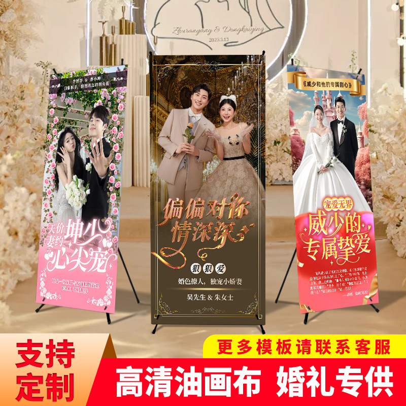 📚 婚礼海报结婚迎宾牌易拉宝定制婚纱照展示架土味搞笑影楼婚庆设计