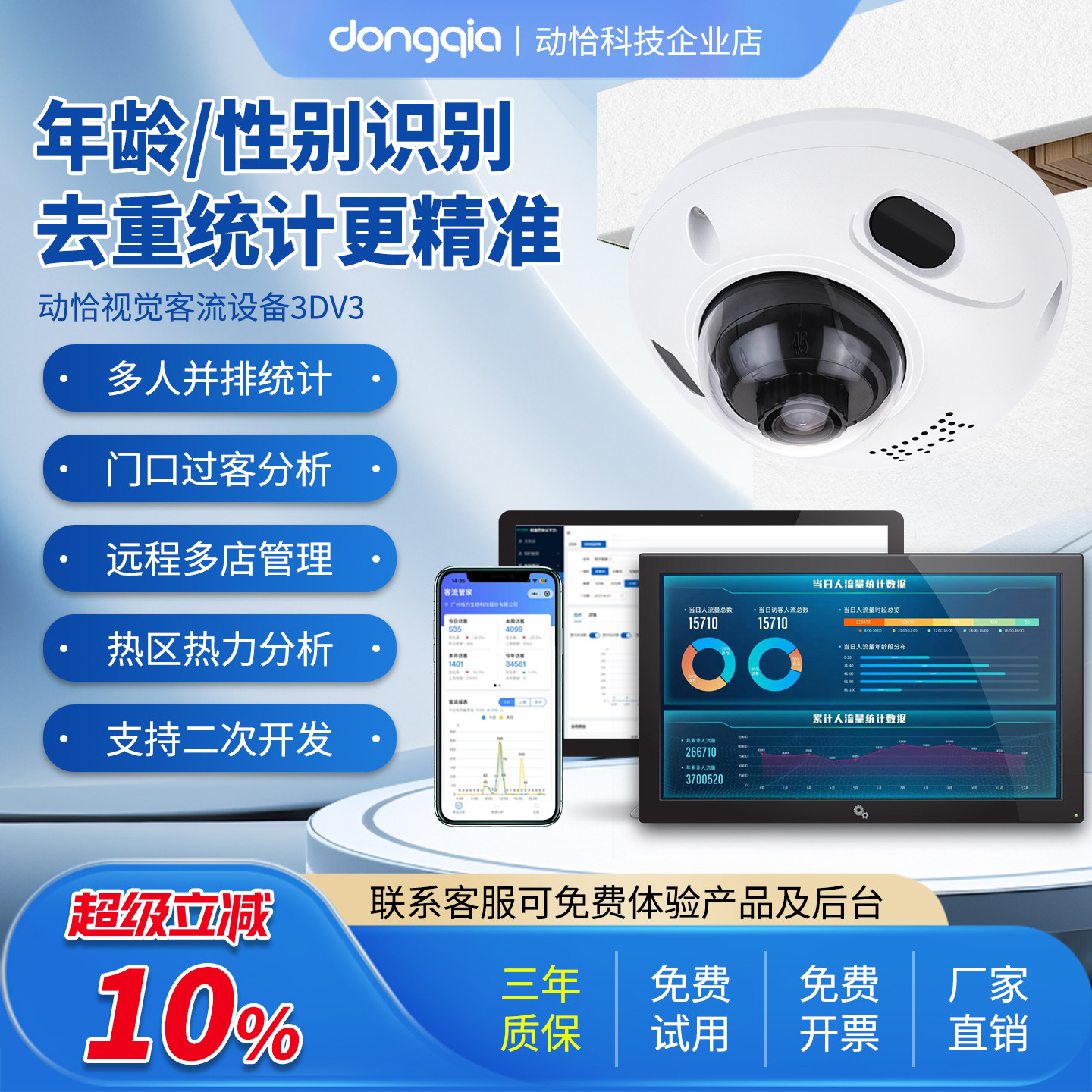 📚 动恰去重客流量计数器智能分析年龄性别摄像机人数统计采集器门店